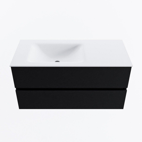 MONDIAZ VICA Meuble de salle de bains 100cm sous-meuble Urban 2 tiroirs. Lavabo CLOUD gauche sans trou de robinet, couleur Talc.