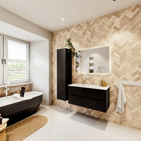 Avec ce meuble de salle de bains contemporain, vous apportez à votre intérieur un point central calme et élégant, idéal pour ceux qui aiment une salle de bains moderne et bien rangée. La combinaison d’une largeur compacte de 100 cm et de deux tiroirs spacieux rend ce meuble particulièrement adapté aux salles de bains de taille moyenne ainsi qu’aux salles de bains plus petites, où chaque centimètre compte. La douce couleur Talc crée une atmosphère légère et sereine et se marie aisément avec des accents noirs, des tons bois ou au contraire avec une robinetterie et une céramique d’un blanc pur. Grâce au lavabo intégré avec cuve à gauche et sans trou de robinet, vous avez toute la liberté de choisir vous-même un mitigeur encastré ou posé assorti, ce qui vous permet d’accorder parfaitement le style avec le reste de votre intérieur. Ce meuble convient à une salle de bains moderne, minimaliste ou scandinave, mais trouve tout aussi bien sa place dans une salle de bains familiale ou d’appoint calme, où fonctionnalité et facilité d’entretien sont importants.