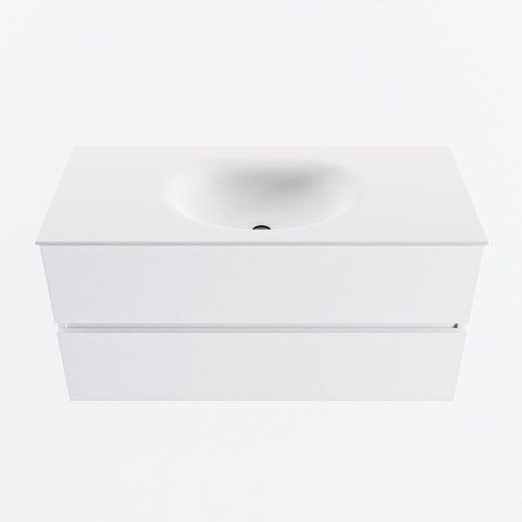 MONDIAZ VICA meuble sous lavabo 100cm Talc 2 tiroirs. Lavabo MOON centre 1 trou de robinet, couleur Talc.