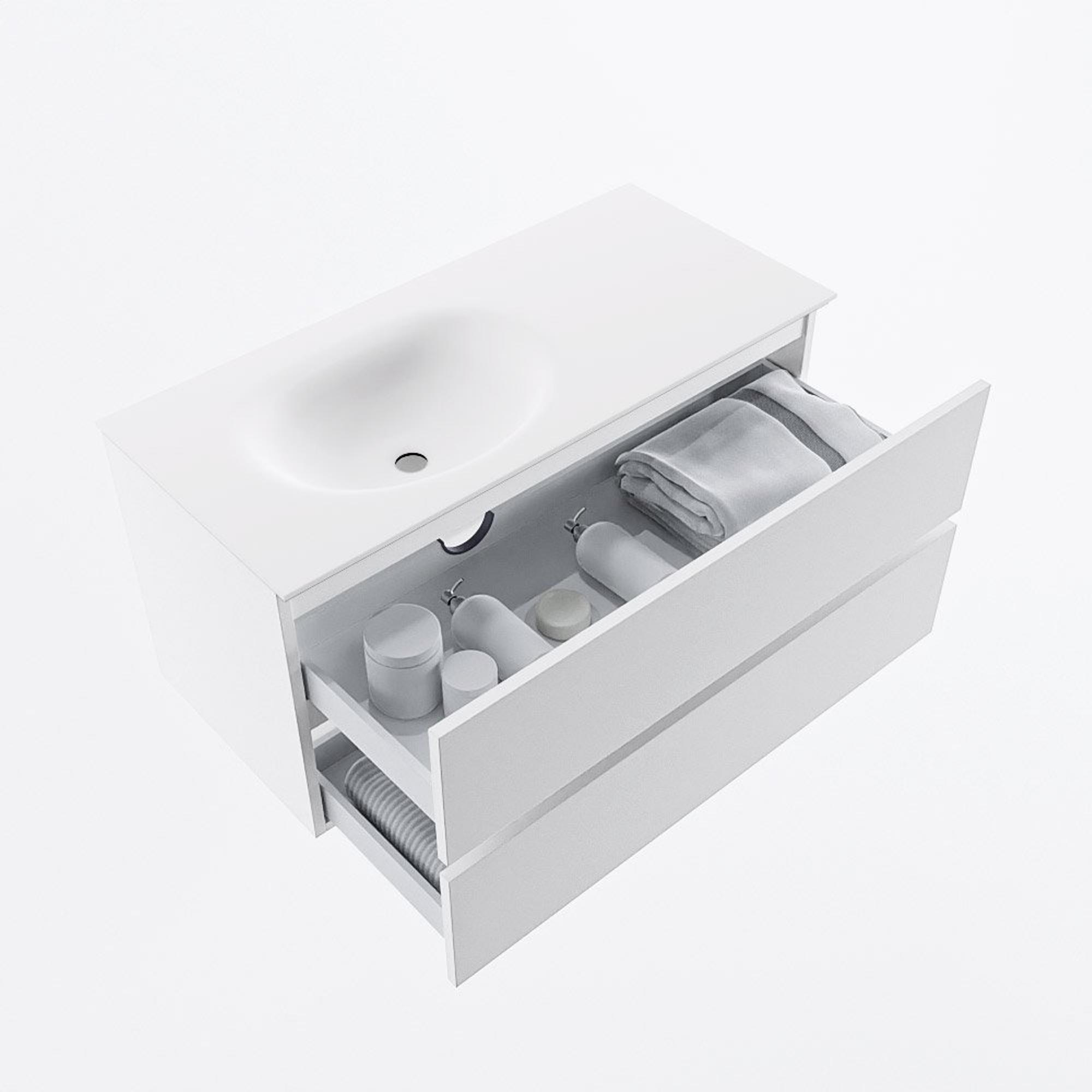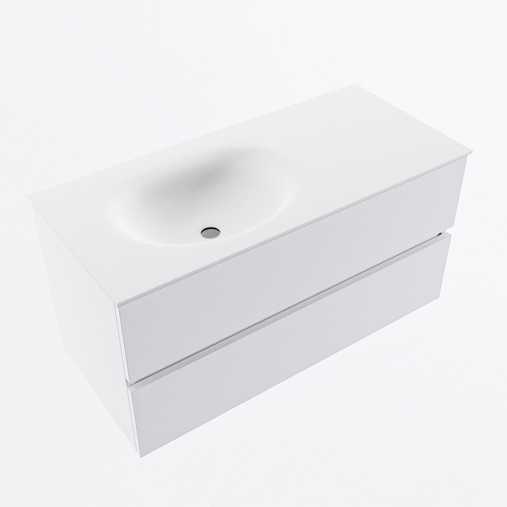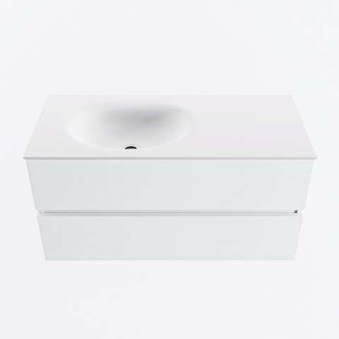 MONDIAZ VICA 100cm meuble sous lavabo Talc 2 tiroirs. Lavabo MOON gauche 1 trou de robinet, couleur Talc.