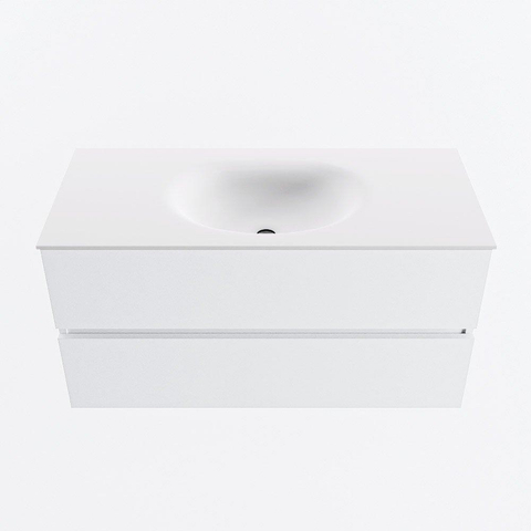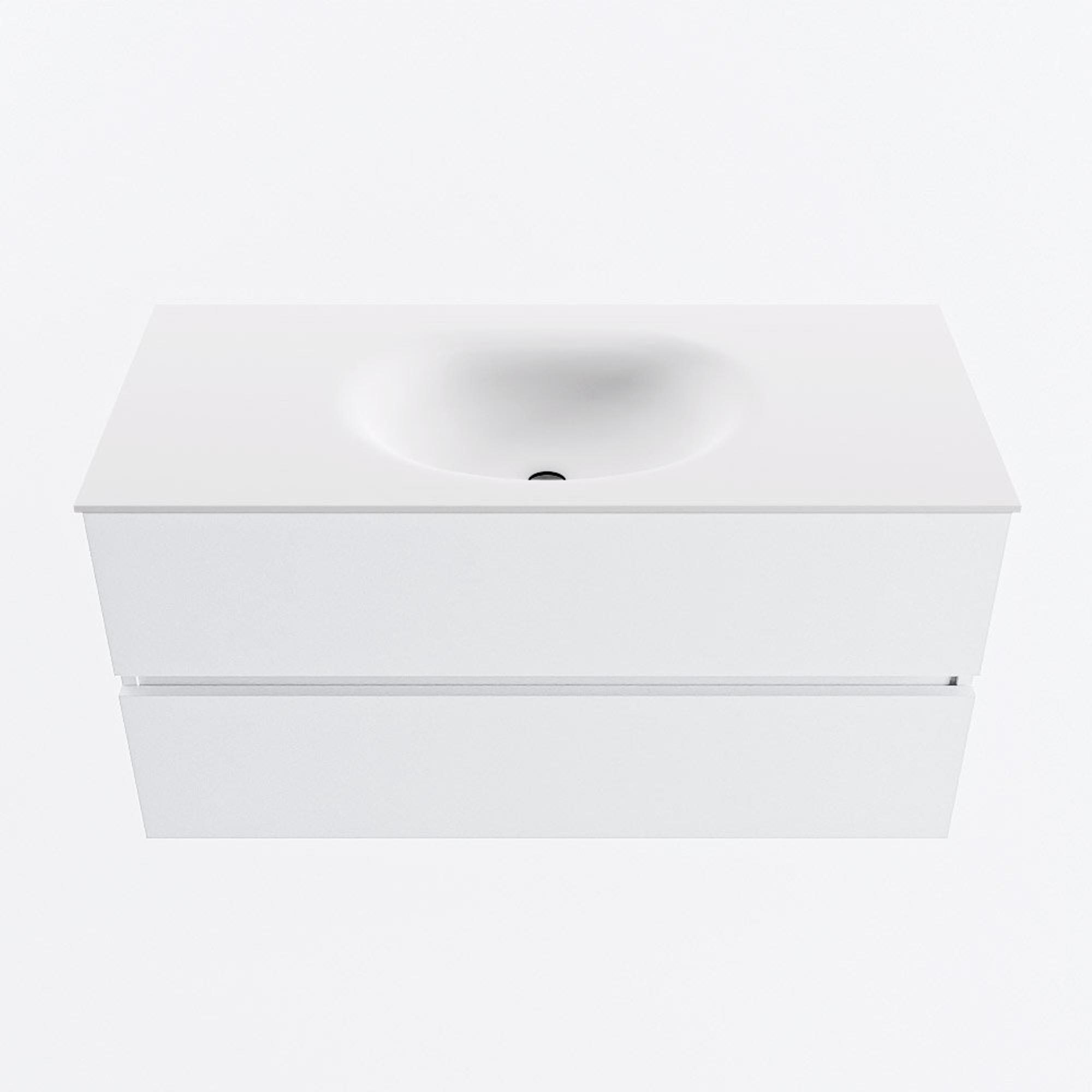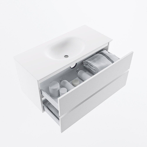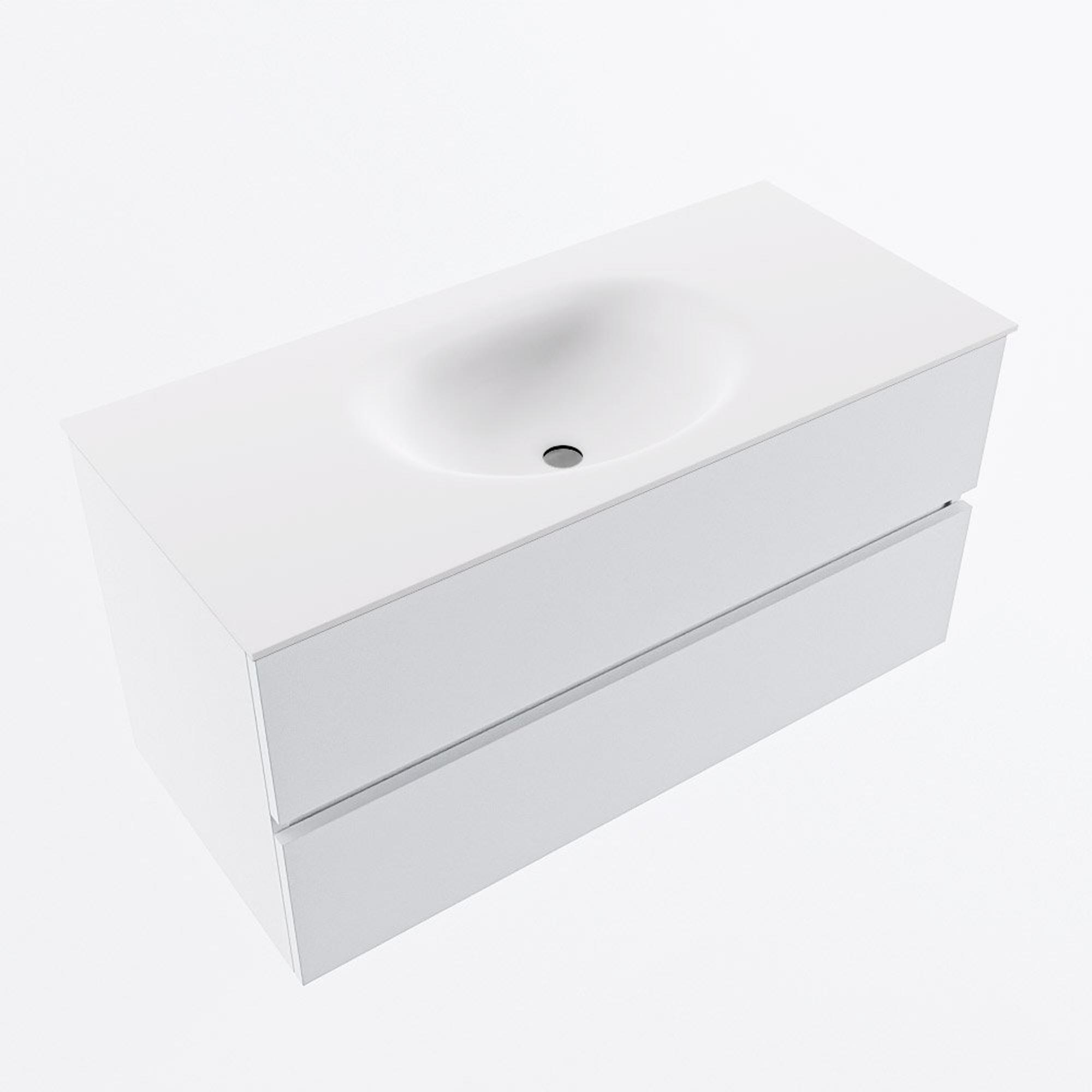 MONDIAZ VICA 100cm meuble de salle de bains sous-meuble Talc 2 tiroirs. Lavabo MOON central sans trou de robinet, couleur Talc.