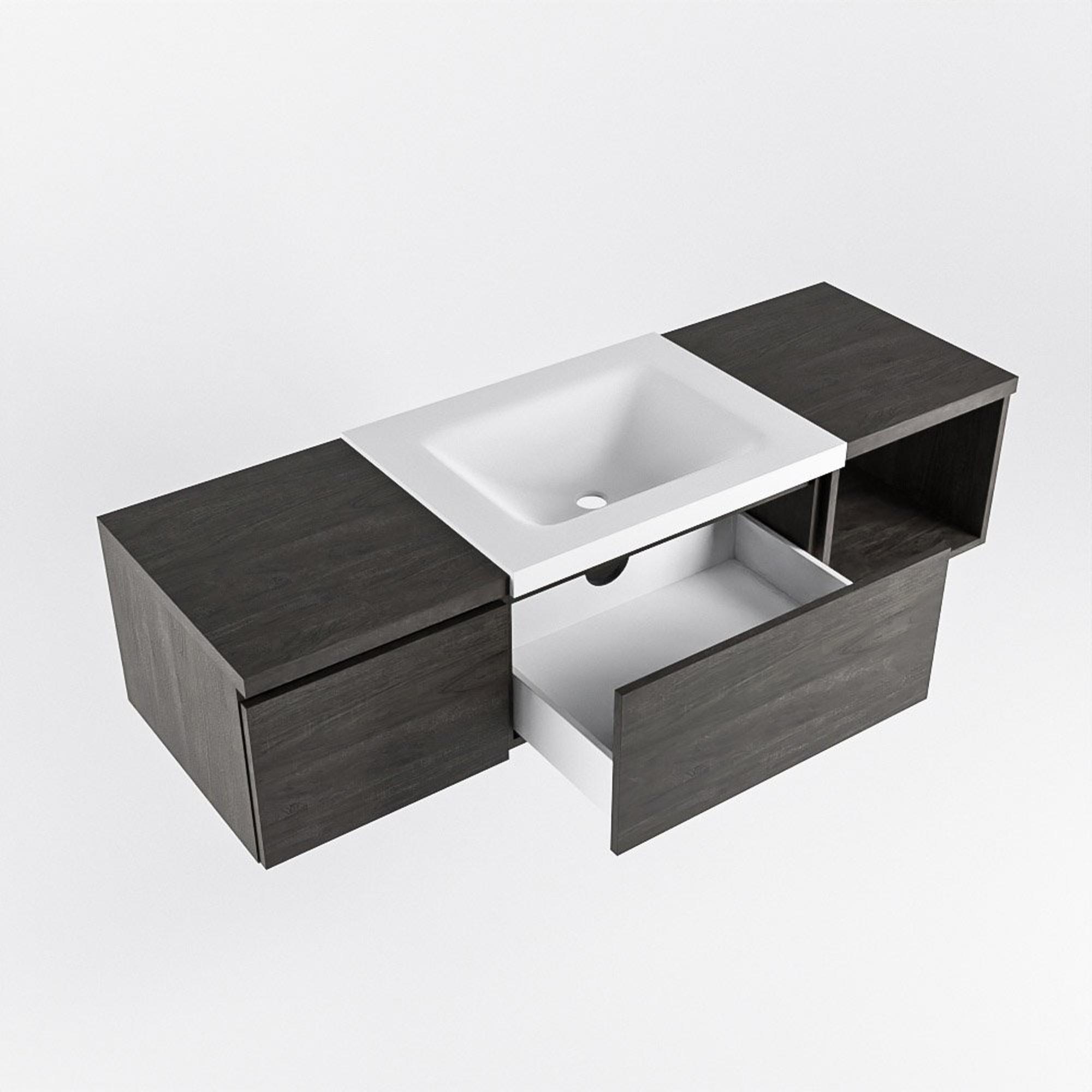 Découvrez le luxe ultime dans votre salle de bain avec ce meuble de salle de bain. La couleur Marron Foncé dégage élégance, tandis que le module ouvert sur le côté droit ajoute une touche moderne. Les deux tiroirs offrent suffisamment d'espace de rangement pour tous vos accessoires de salle de bain, gardant tout bien organisé.
