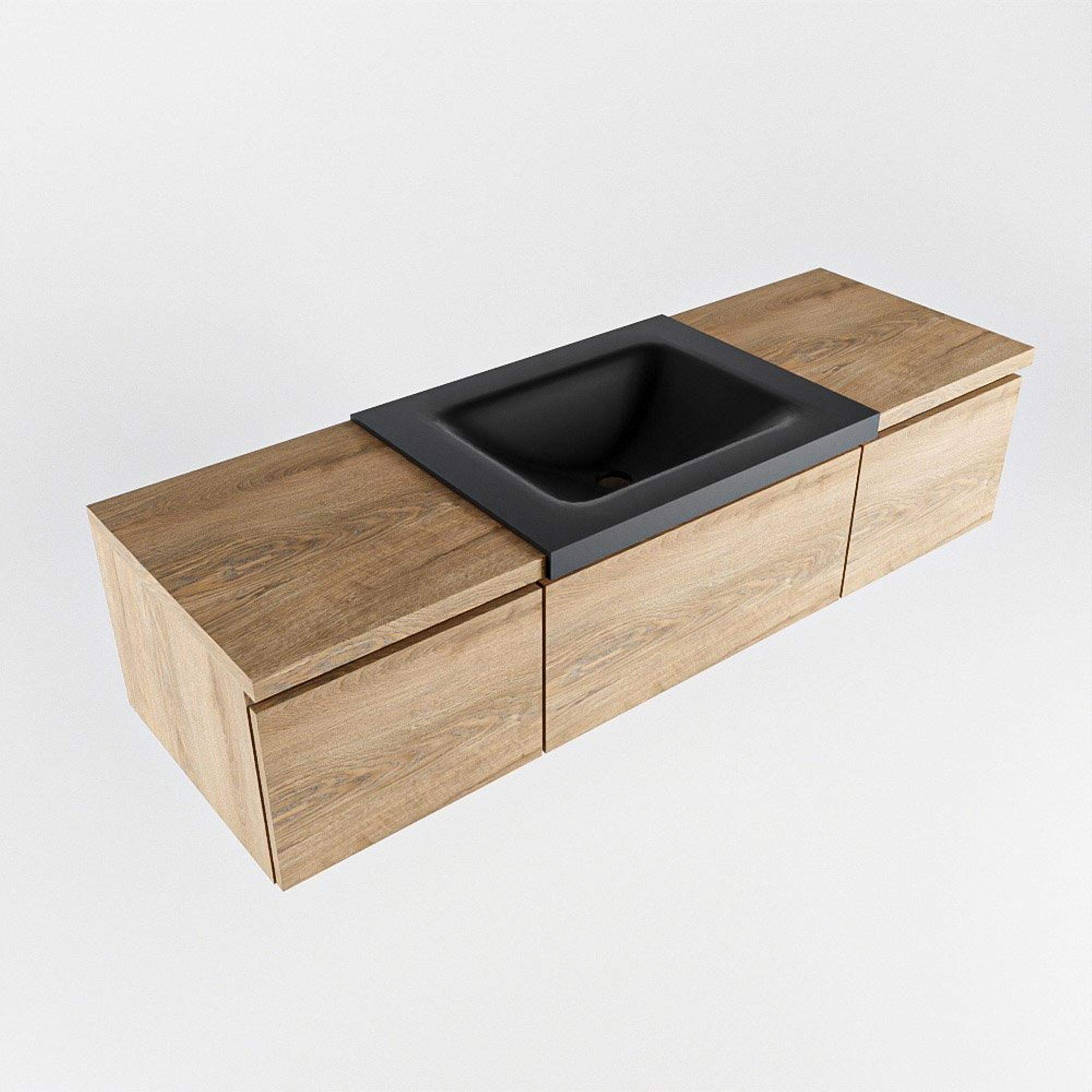 MONDIAZ BUKLA meuble de salle de bains 140 cm avec module 40 couleur Washed Oak avec 3 tiroirs. Lavabo CLOUD central 0 trous de robinet couleur Urban.