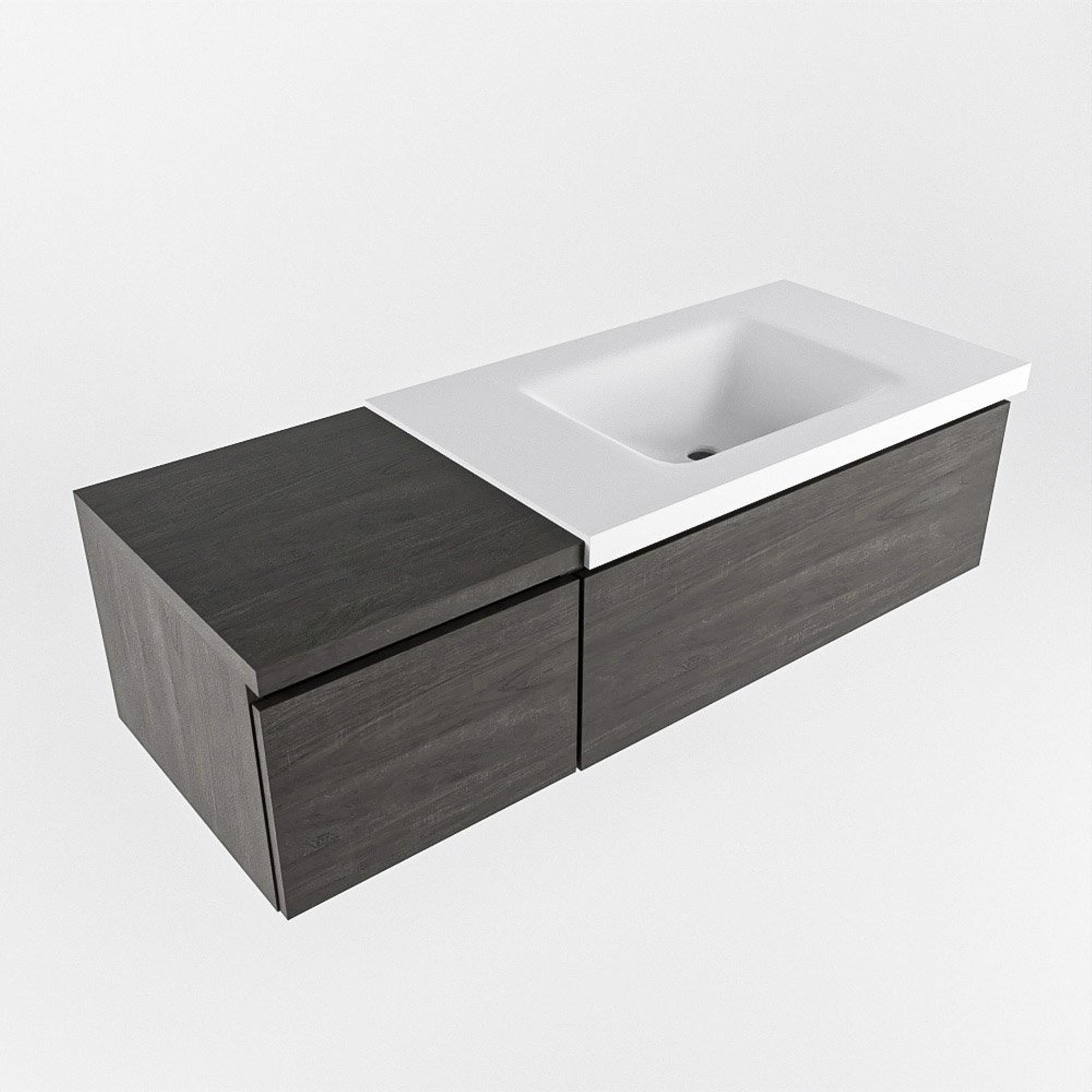 Ce meuble de salle de bain respire le luxe dans chaque fibre. La couleur Marron Foncé profonde et riche ajoute une touche d'élégance à votre salle de bain. Les 2 tiroirs offrent suffisamment d'espace de rangement pour tous vos accessoires de salle de bain, tandis que le Lavabo CLOUD à droite est un ajout à la fois élégant et pratique. Profitez d'une salle de bain qui vous donne chaque jour l'impression d'être dans un spa chic.