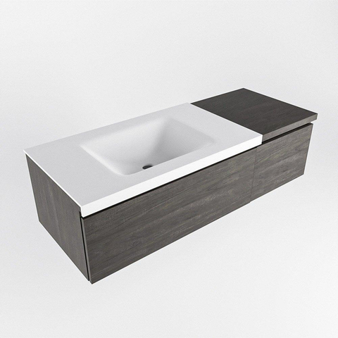 Si vous recherchez un meuble de salle de bains moderne qui dégage de la chaleur et rend votre salle de bains immédiatement bien organisée, alors cette combinaison est un choix judicieux. La largeur généreuse de 120 cm offre beaucoup d'espace, tandis que le module supplémentaire de 40 cm est idéal si vous souhaitez un peu plus d'espace de rangement sans que votre salle de bains paraisse encombrée. La teinte de bois foncé s'intègre parfaitement dans une salle de bains moderne, style hôtel chic ou industrielle et se marie bien avec des carreaux aussi bien clairs que foncés. Grâce au lavabo intégré à gauche, vous pouvez positionner le robinet de manière logique et créer, par exemple, plus d'espace libre de dépose à droite pour les objets du quotidien. Ce meuble donne le meilleur de lui-même dans une salle de bains de taille moyenne à grande, ou dans un espace compact où vous souhaitez un meuble tout-en-un fort qui offre à la fois style et fonctionnalité.
