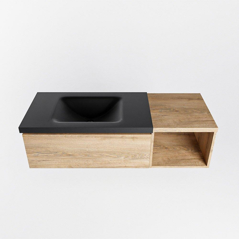 MONDIAZ BUKLA 120cm ensemble de meuble avec module ouvert 40 couleur Chêne blanchi avec 1 tiroir. Lavabo CLOUD gauche 0 trous de robinet couleur Urbaine.