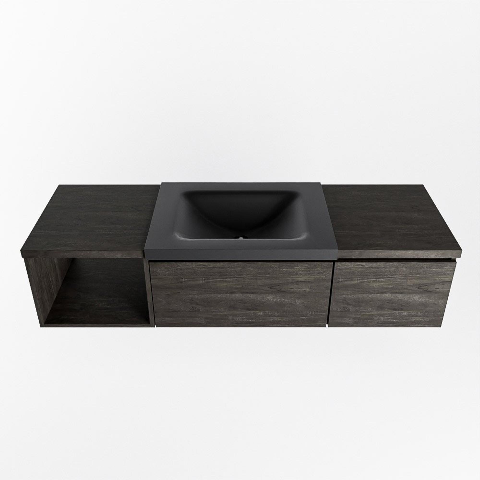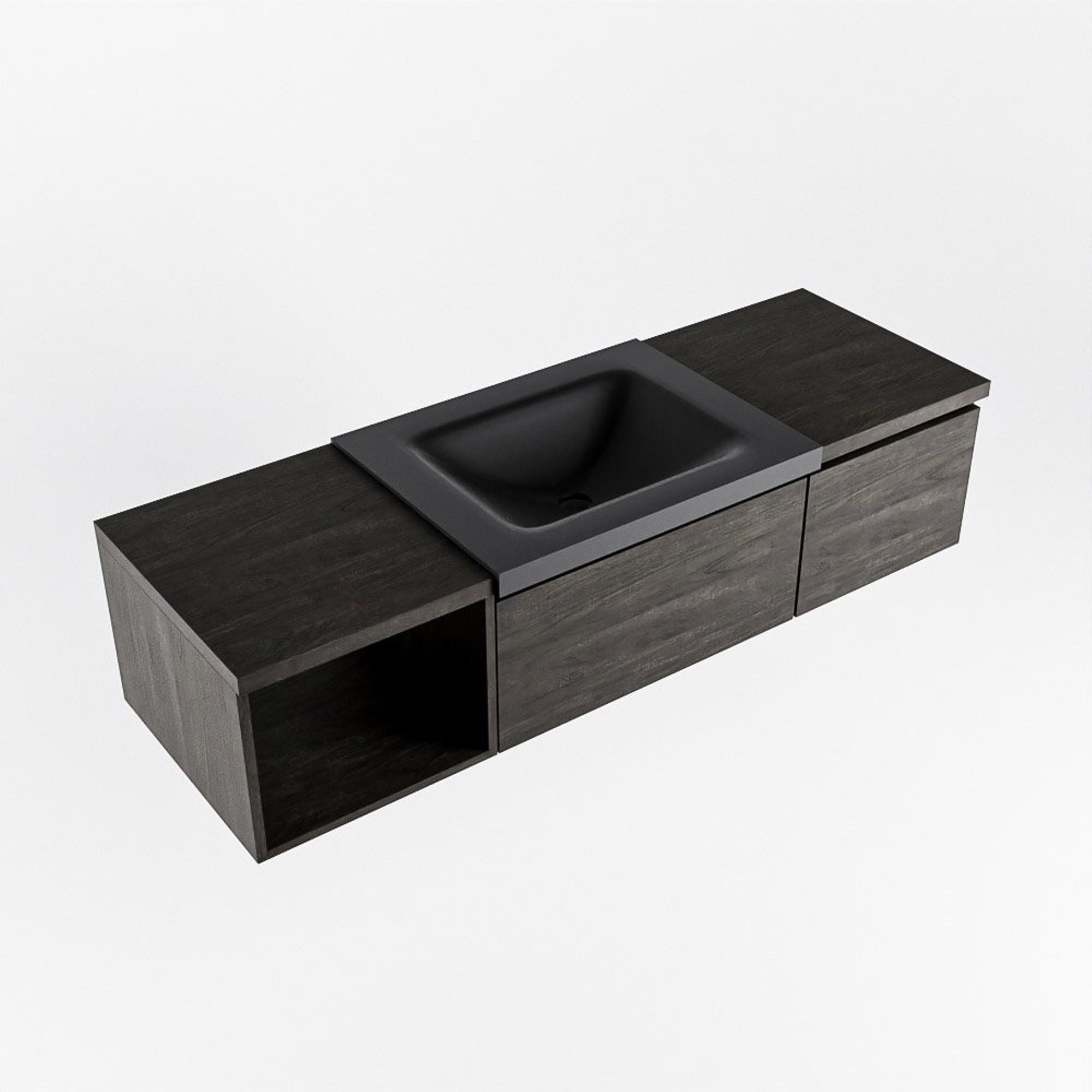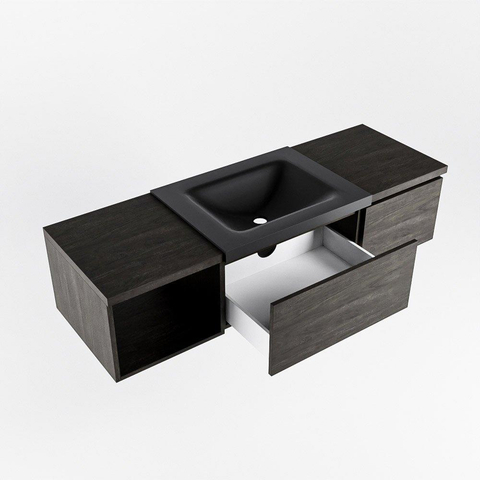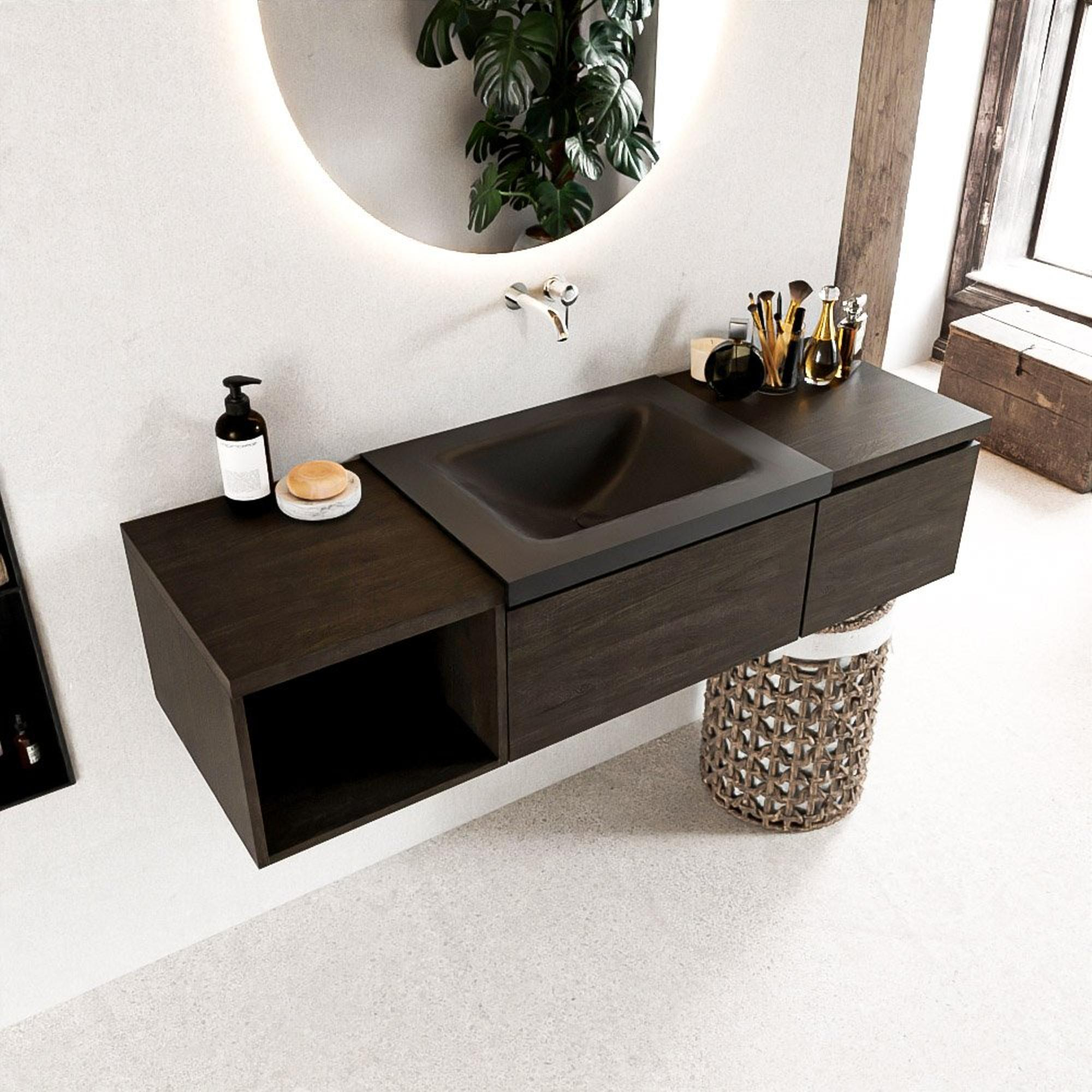 MONDIAZ BUKLA 140cm ensemble de meuble avec module ouvert 40 gauche couleur Marron Foncé avec 2 tiroirs. Lavabo CLOUD droit 0 trou de robinet couleur Urban.