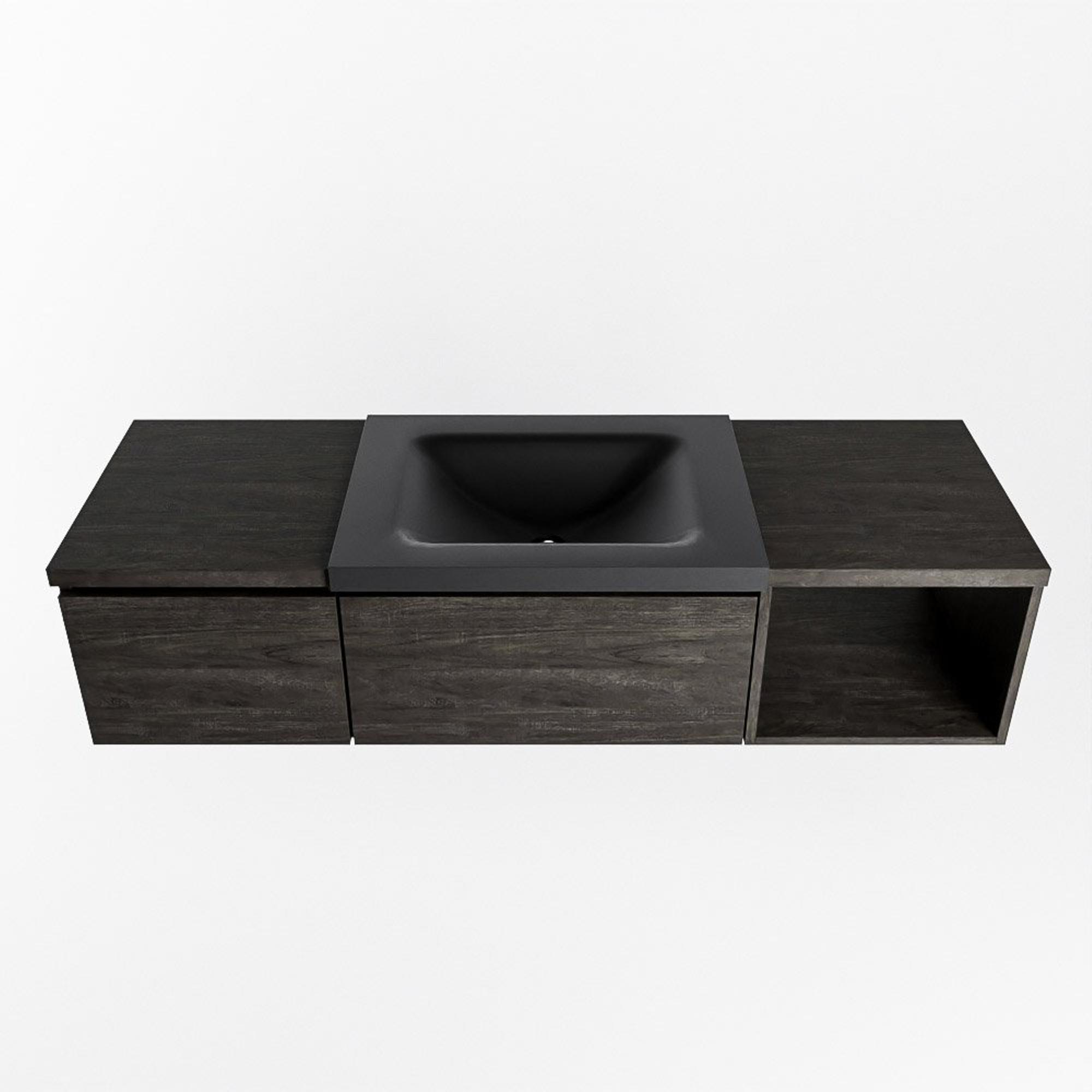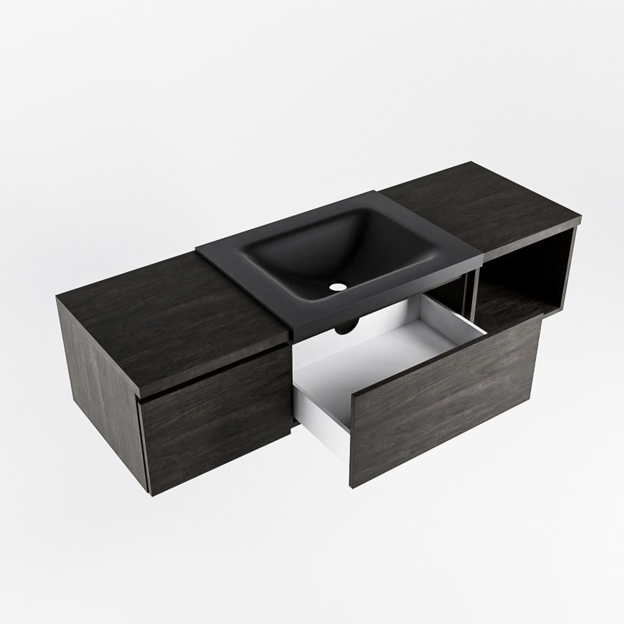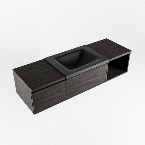 MONDIAZ BUKLA Meuble de salle de bains 140 cm avec module ouvert 40 à droite couleur Dark Brown avec 2 tiroirs. Lavabo CLOUD à droite 0 trou de robinet couleur Urban.