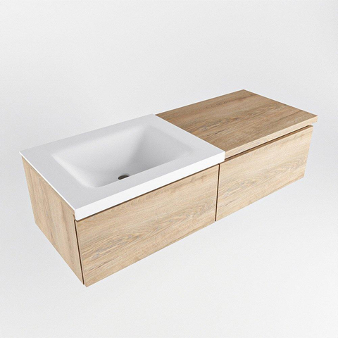 MONDIAZ BUKLA meuble de salle de bain 120 cm avec module 60 couleur Chêne blanchi avec 2 tiroirs. Lavabo CLOUD gauche 0 trous de robinet couleur Talc.
