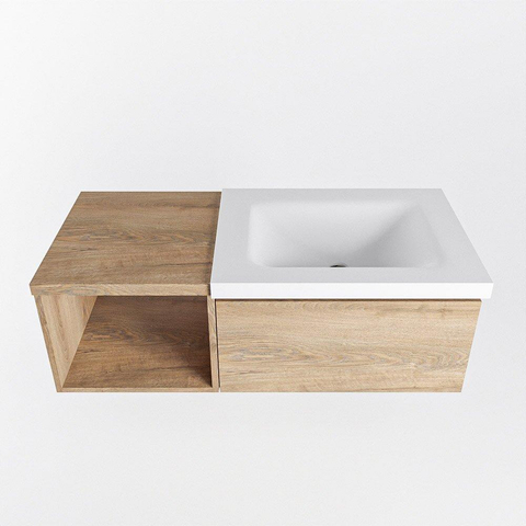 MONDIAZ BUKLA meuble de salle de bain 100cm avec module ouvert 40 couleur Chêne blanchi avec 1 tiroir. Lavabo CLOUD à droite 1 trou de robinet couleur Talc.