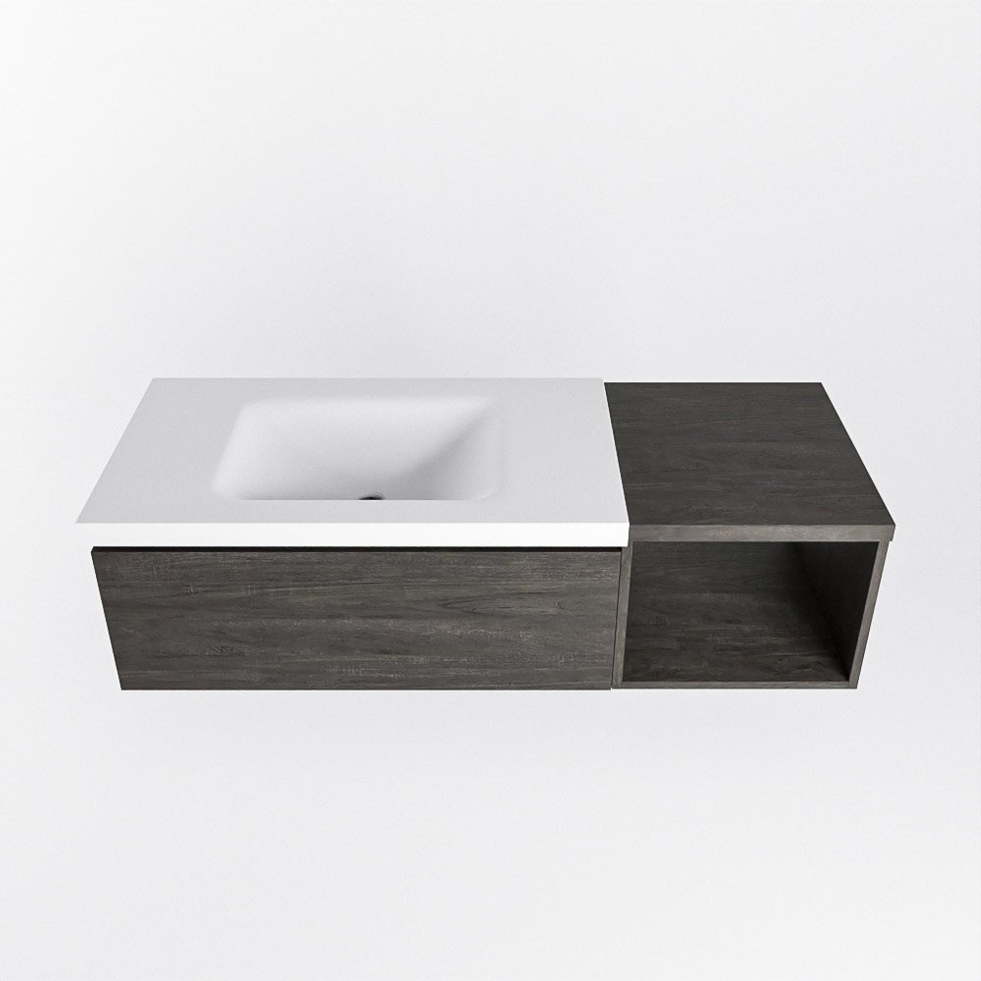 MONDIAZ BUKLA Meuble de salle de bains 120 cm avec module ouvert 40 couleur Dark Brown avec 1 tiroir. Lavabo CLOUD gauche 0 trou(s) de robinet couleur Talc.