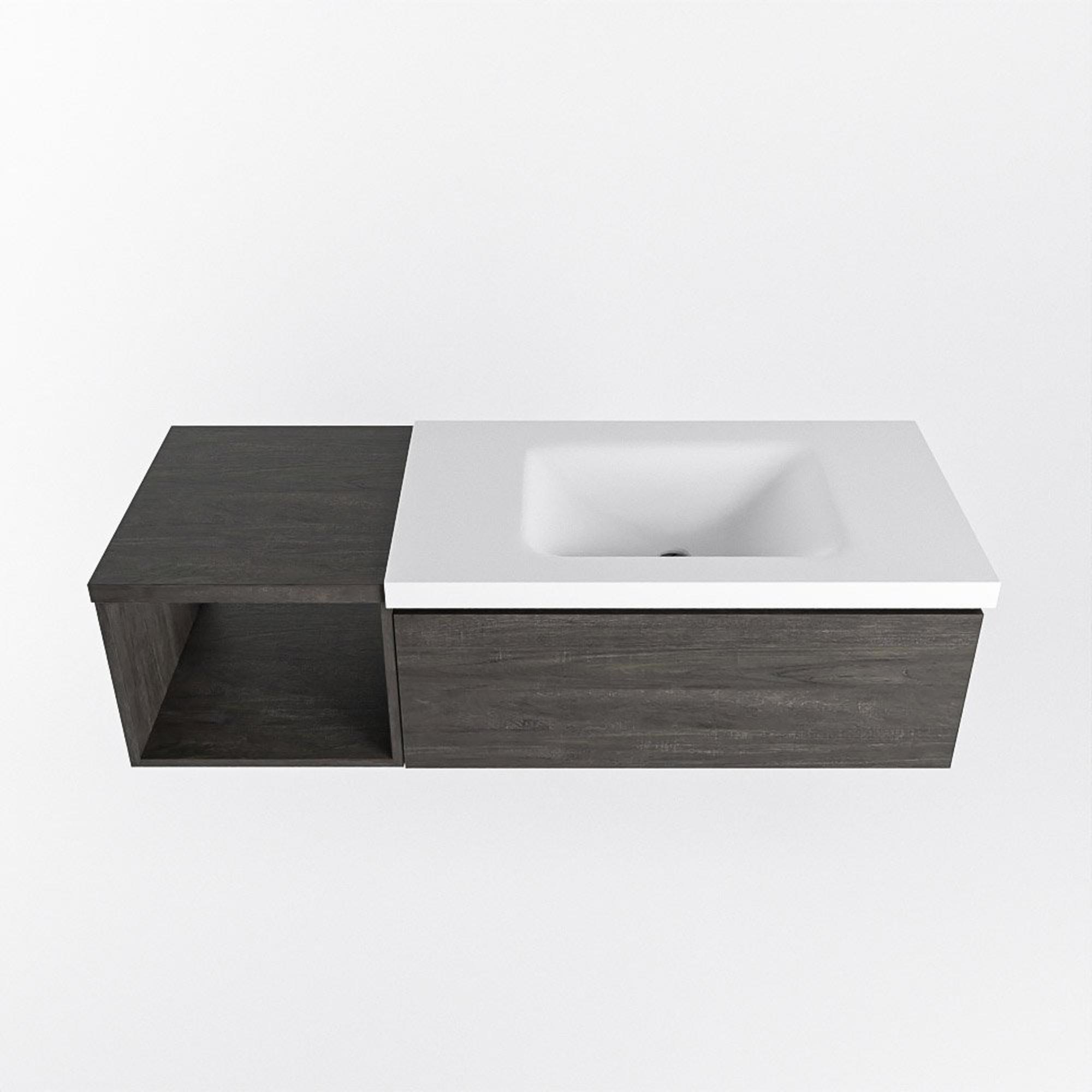 MONDIAZ BUKLA 120cm ensemble de meuble avec module ouvert 40 couleur Marron Foncé avec 1 tiroir. Lavabo CLOUD à droite 0 trous de robinet couleur Talc.