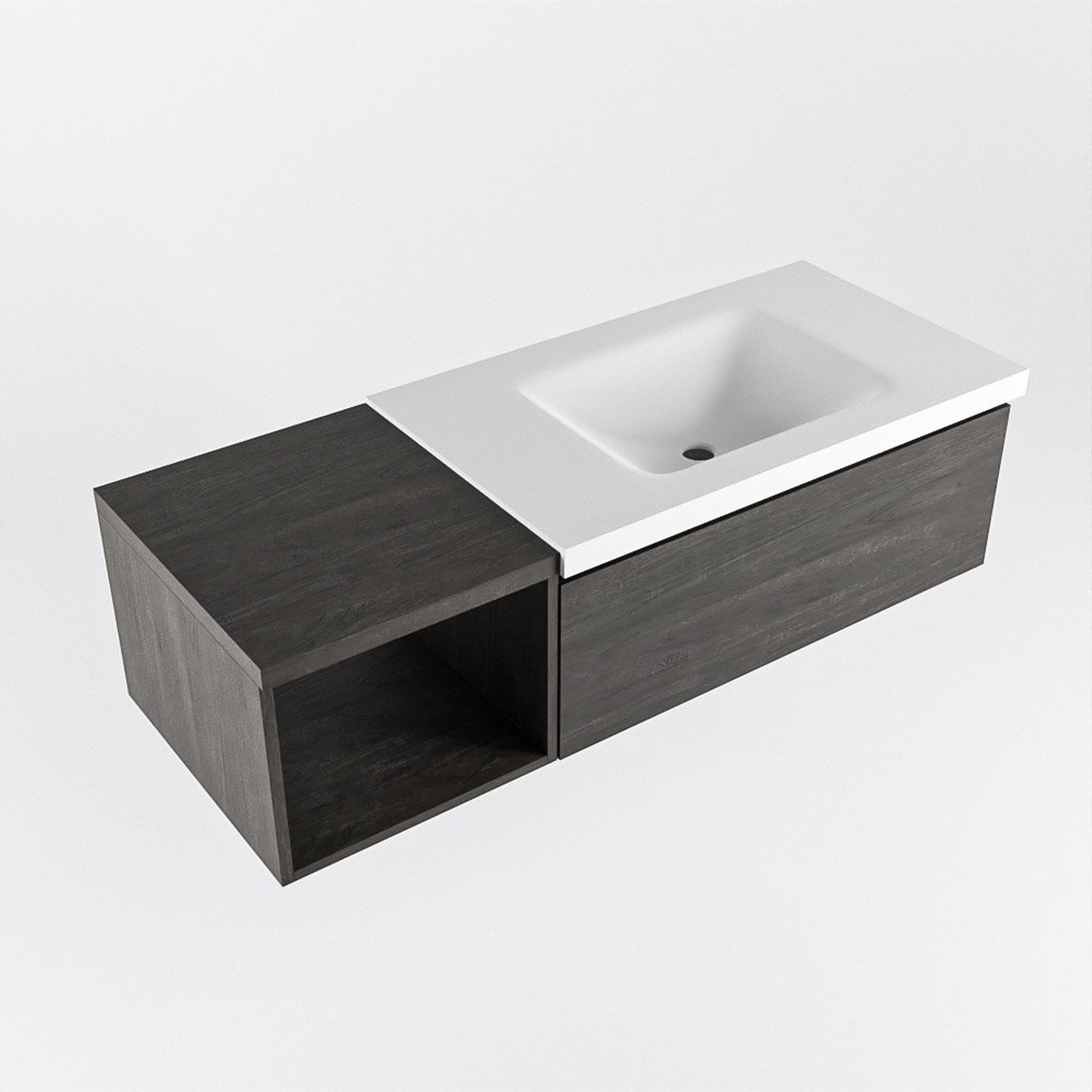 MONDIAZ BUKLA Meuble de salle de bains 120 cm avec module ouvert 40 couleur Dark Brown avec 1 tiroir. Lavabo CLOUD à droite 0 trous de robinet couleur Talc.