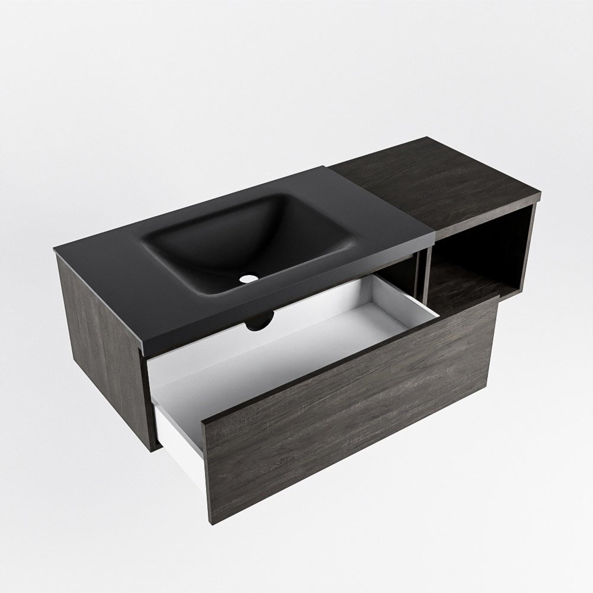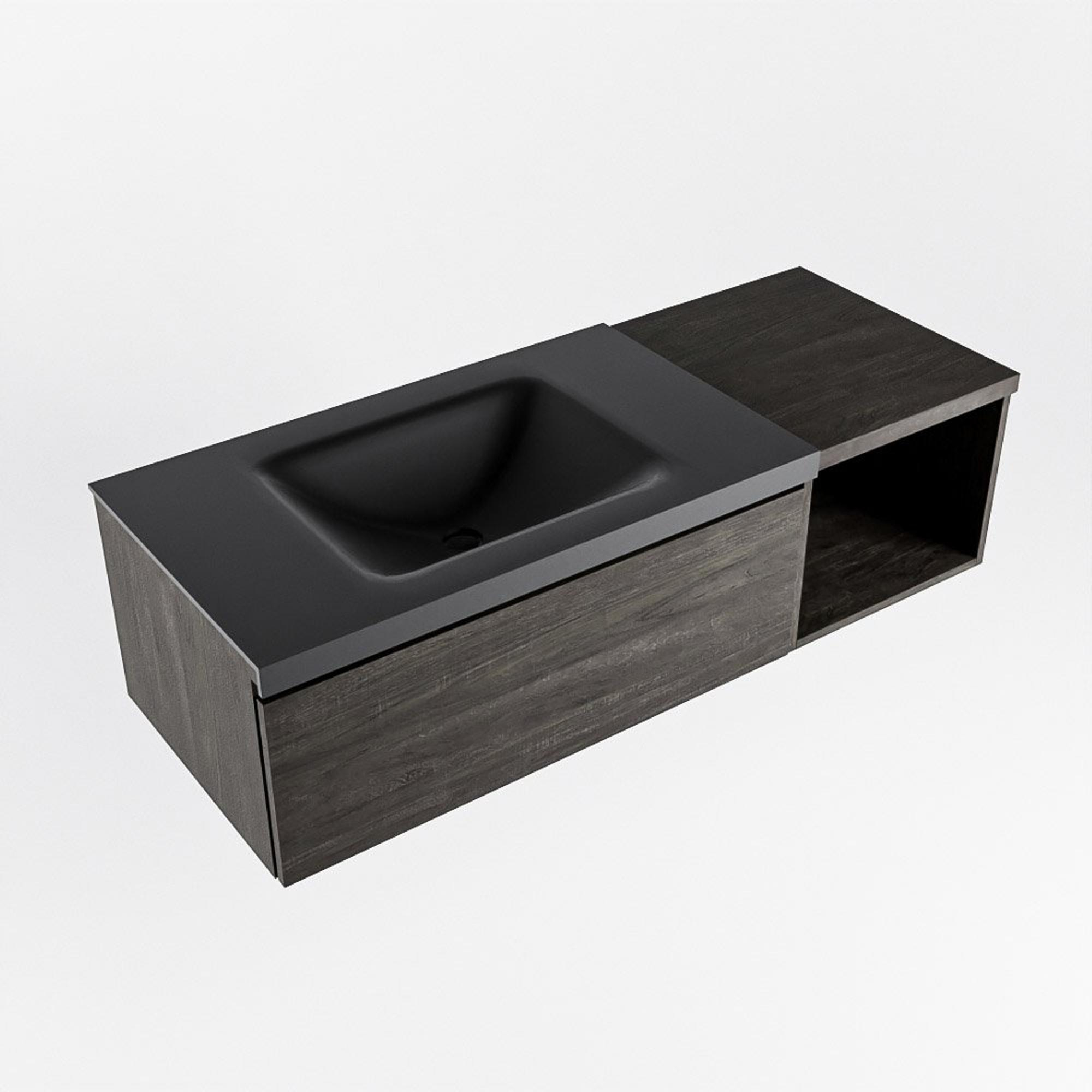 MONDIAZ BUKLA 120cm meuble de salle de bain avec module ouvert 40 couleur Marron Foncé avec 1 tiroir. Lavabo CLOUD gauche 1 trou de robinet couleur Urban.