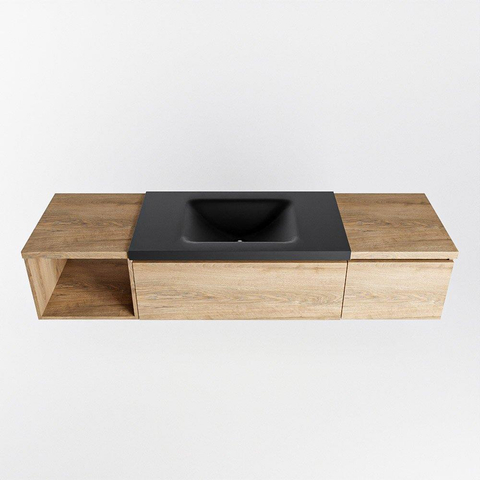 MONDIAZ BUKLA 160cm ensemble de meuble avec module ouvert 40 gauche couleur Chêne blanchi avec 2 tiroirs. Lavabo CLOUD centre 0 trous de robinet couleur Urbaine.