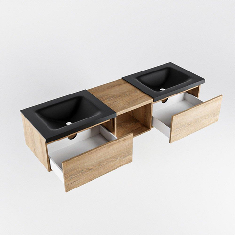 MONDIAZ BUKLA 160cm meuble de salle de bain avec module ouvert 40 couleur Chêne blanchi avec 2 tiroirs. Lavabo CLOUD double 0 trou de robinet couleur Urbain.