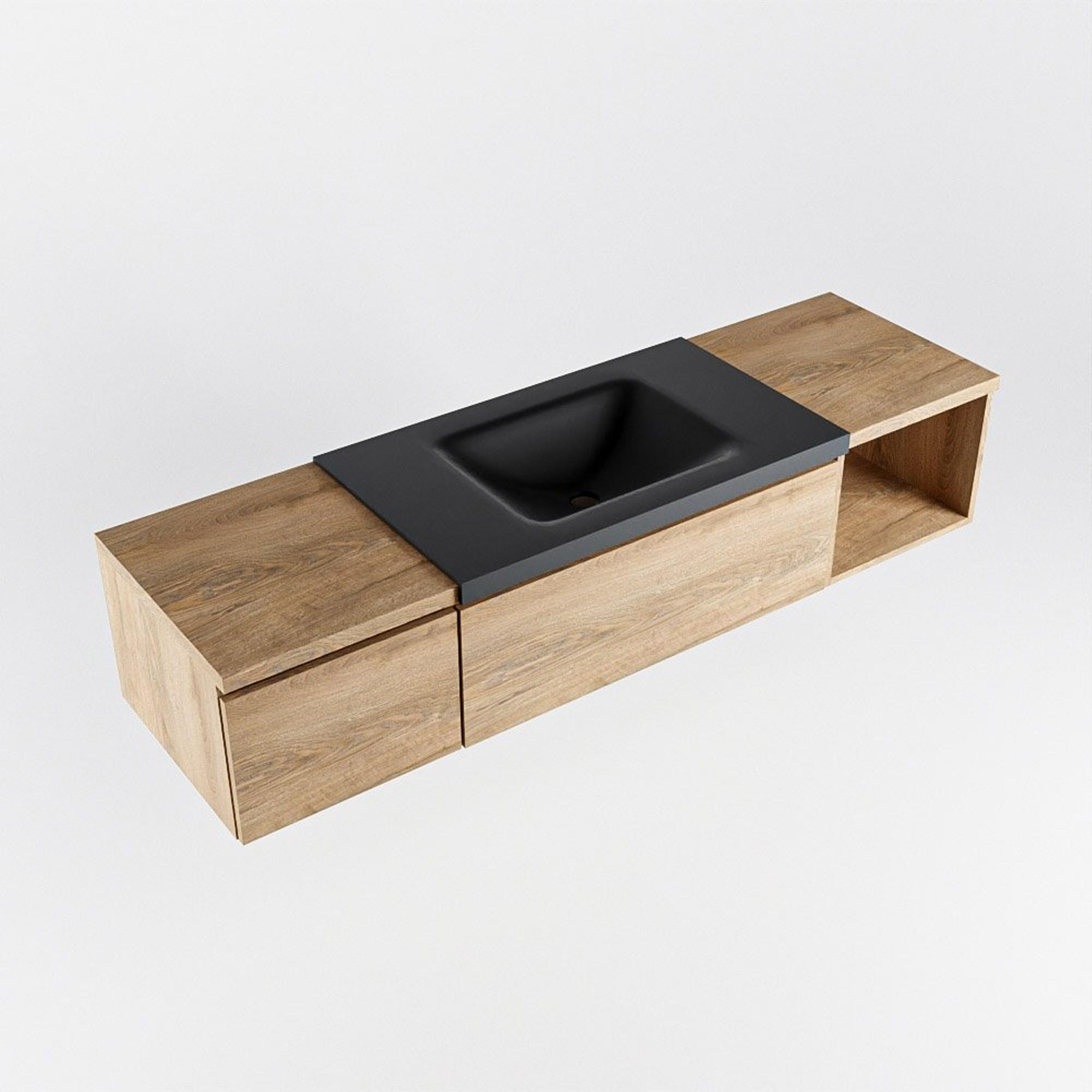 MONDIAZ BUKLA 160cm meuble de salle de bain avec module ouvert 40 à droite couleur Chêne blanchi avec 2 tiroirs. Lavabo CLOUD centre 0 trous de robinet couleur Urbaine.