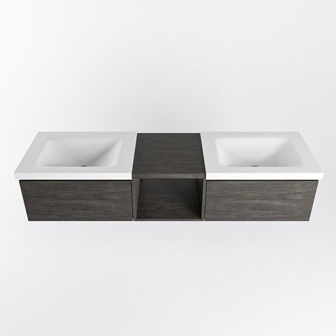 MONDIAZ BUKLA Meuble de salle de bains 160cm avec module ouvert 40 couleur Dark Brown avec 2 tiroirs. Lavabo CLOUD double 2 trous de robinet couleur Talc.