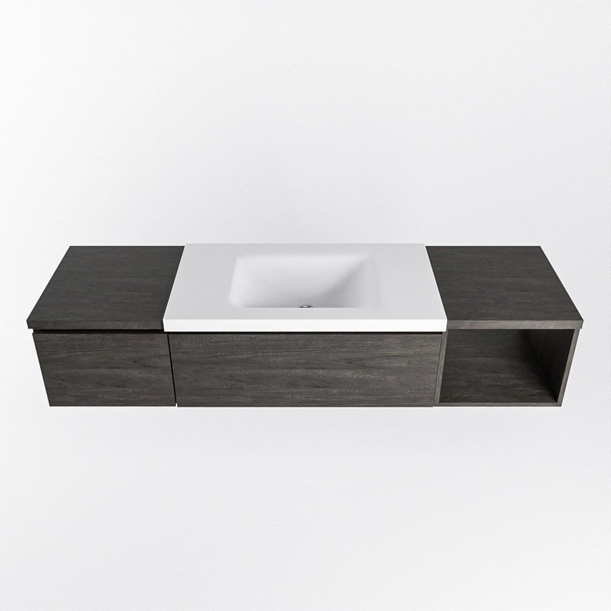 MONDIAZ BUKLA Meuble de salle de bains 160cm avec module ouvert 40 à droite couleur Dark Brown avec 2 tiroirs. Lavabo CLOUD central 0 trous de robinet couleur Talc.