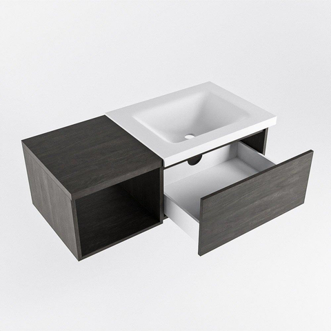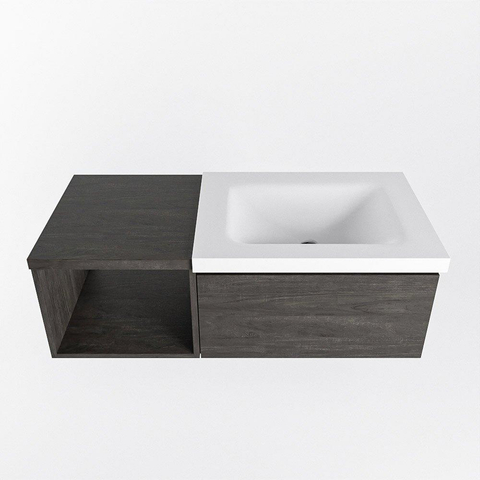 MONDIAZ BUKLA 100cm ensemble de meuble avec module ouvert 40 couleur Marron Foncé avec 1 tiroir. Lavabo CLOUD à droite 0 trous de robinet couleur Talc.