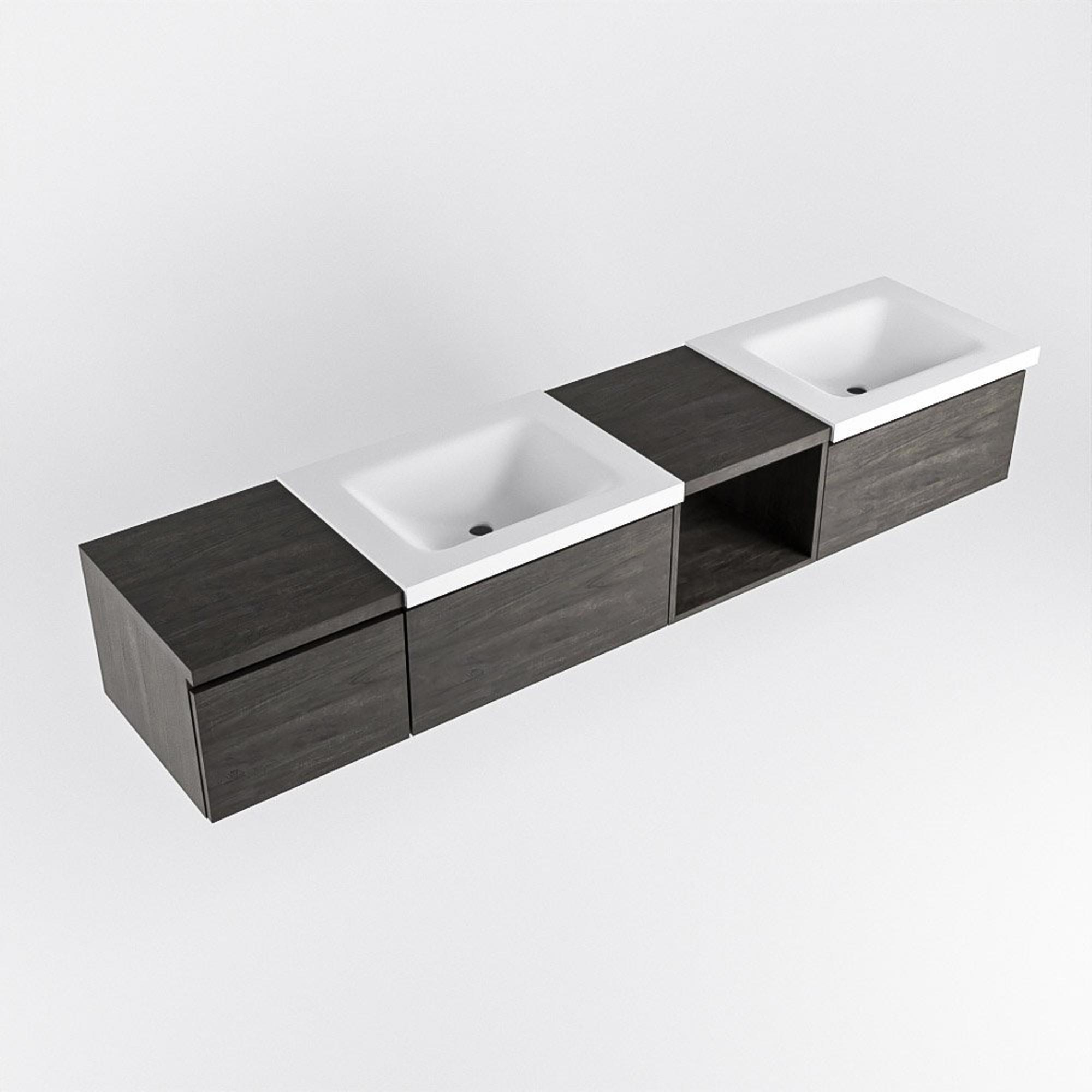 Ce magnifique meuble de salle de bain avec module ouvert et double lavabo est un véritable ajout à l'intérieur de votre salle de bain. Avec une longueur de 200 cm et une élégante couleur Marron Foncé, le MONDIAZ BUKLA dégage luxe et style. Les 3 tiroirs spacieux offrent suffisamment d'espace de rangement, tandis que le Lavabo CLOUD dans la douce couleur Talc ajoute une touche raffinée à l'espace.