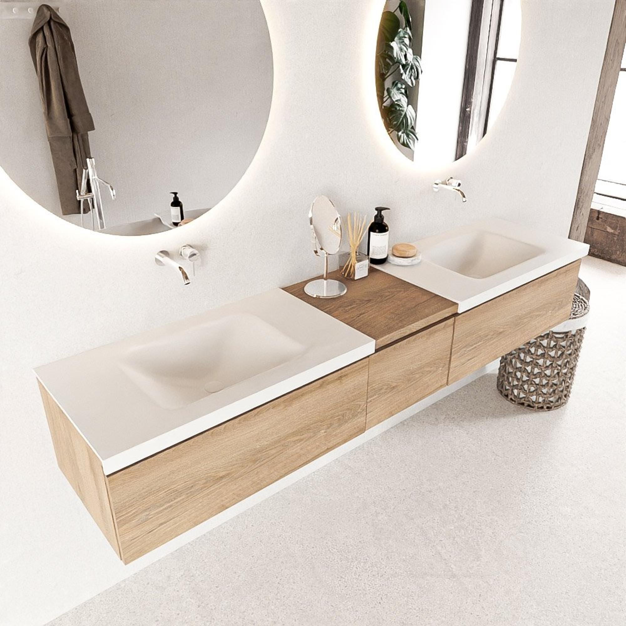 - Meuble de salle de bain de 200 cm avec module 40 en couleur Chêne Blanchi