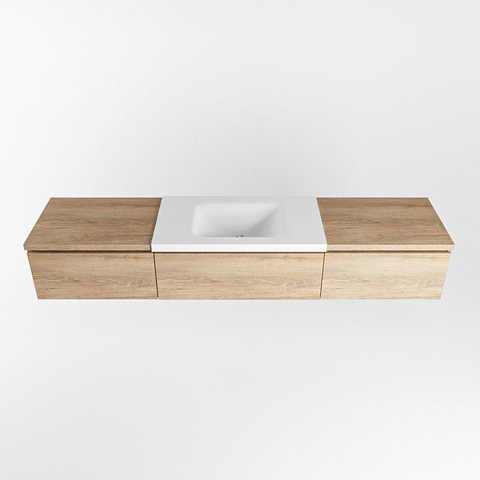 MONDIAZ BUKLA 200cm ensemble de meuble avec module 60 couleur Chêne blanchi avec 3 tiroirs. Lavabo CLOUD milieu 0 trou de robinet couleur Talc.