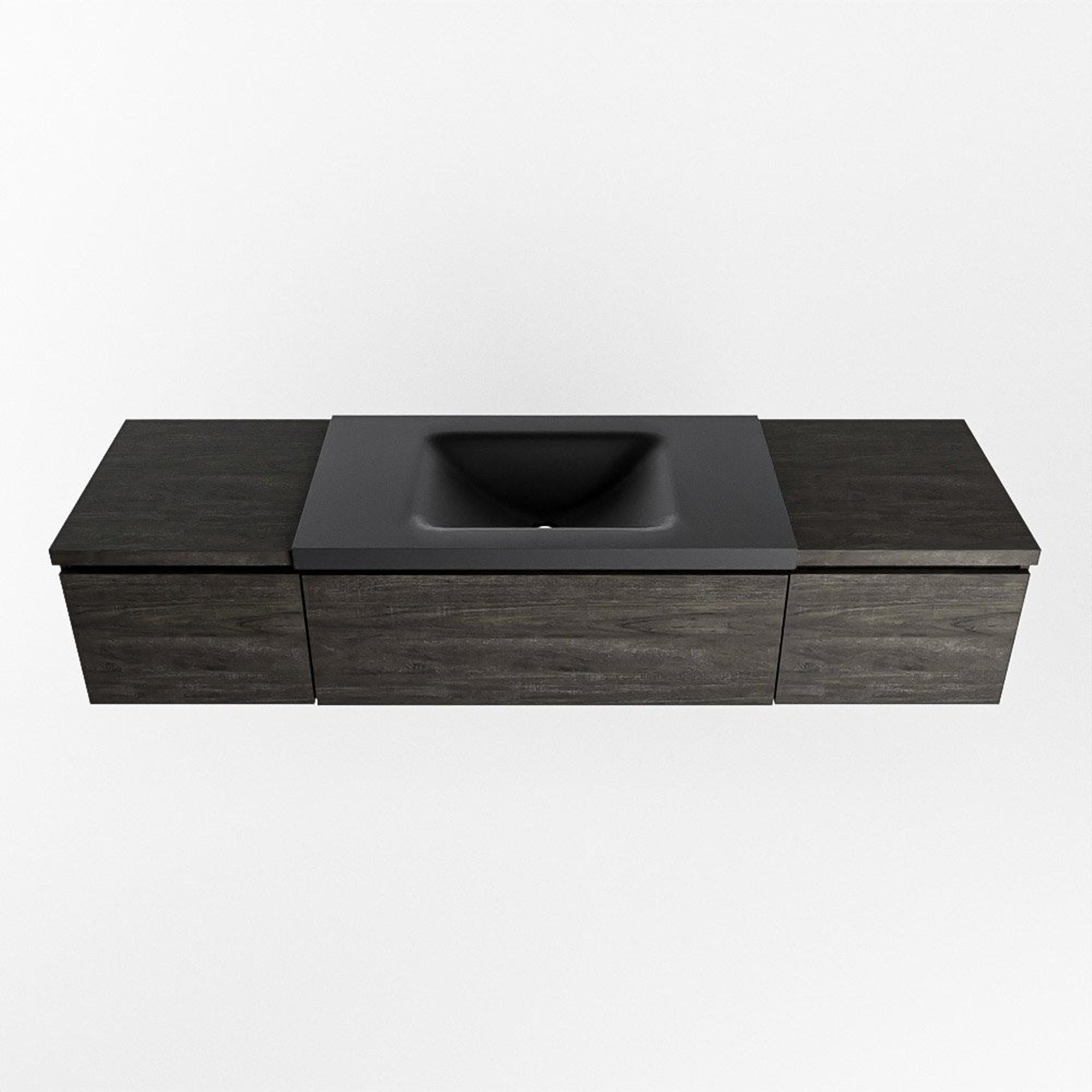 MONDIAZ BUKLA meuble de salle de bain 160 cm avec module 40 couleur Marron Foncé avec 3 tiroirs. Lavabo CLOUD milieu 0 trous de robinet couleur Urban.