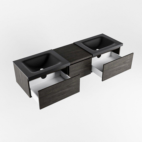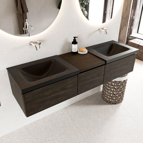 MONDIAZ BUKLA 160cm ensemble de meuble avec module 40 couleur Marron foncé avec 3 tiroirs. Lavabo CLOUD double 0 trou de robinet couleur Urban.