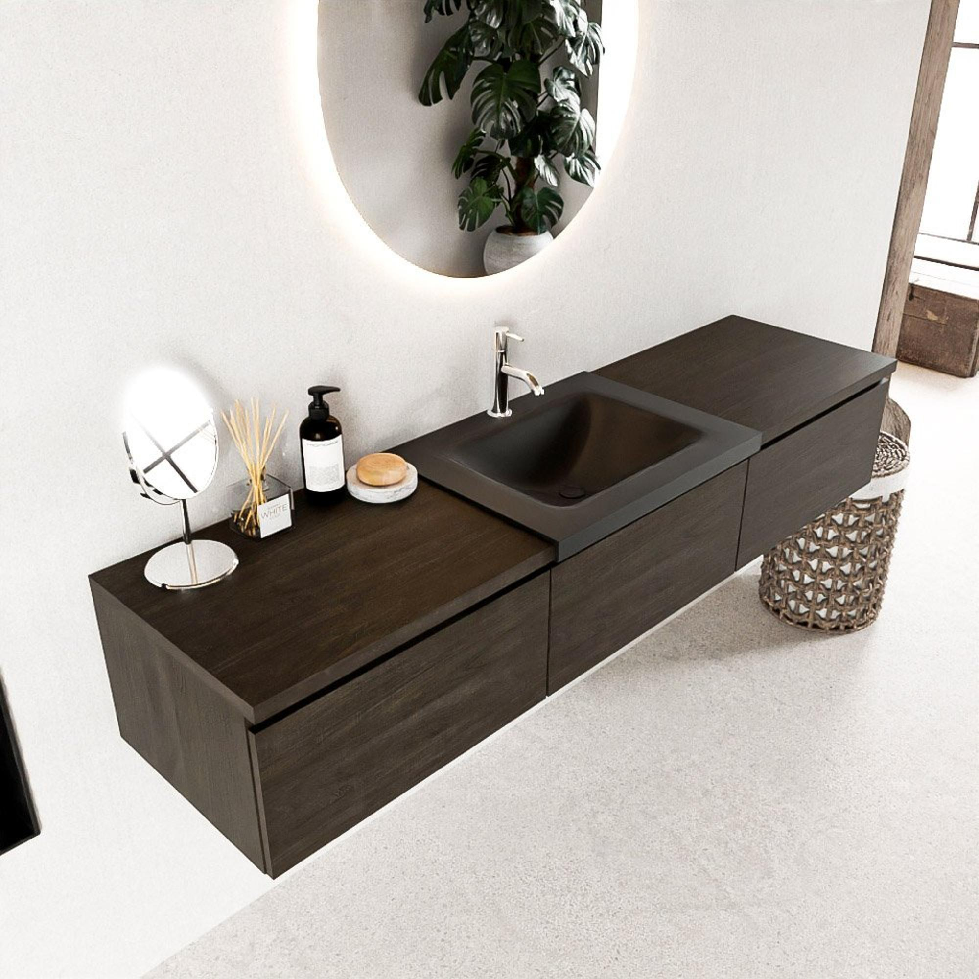 MONDIAZ BUKLA meuble de salle de bain 180 cm avec module 60 couleur Marron Foncé avec 3 tiroirs. Lavabo CLOUD centre 1 trou de robinet couleur Urban.