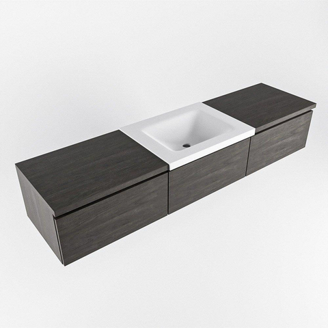 Les trois grands tiroirs vous offrent tout l'espace dont vous avez besoin pour ranger les articles de salle de bains de manière ordonnée. Grâce aux façades sans poignées, l'ensemble paraît minimaliste et épuré, tout en vous permettant d'ouvrir facilement les tiroirs. Les objets tels que sèche-cheveux, articles de rasage, maquillage et stock de produits de soin disparaissent joliment hors de vue, ce qui garde votre plan de lavabo calme et bien rangé. La largeur de 180 cm combinée au module séparé de 60 cm vous permet de répartir intelligemment l'espace, par exemple en séparant l'usage quotidien du stock. Ainsi, votre routine matinale commence de manière détendue, sans devoir chercher ce petit pot ou ce chiffon.