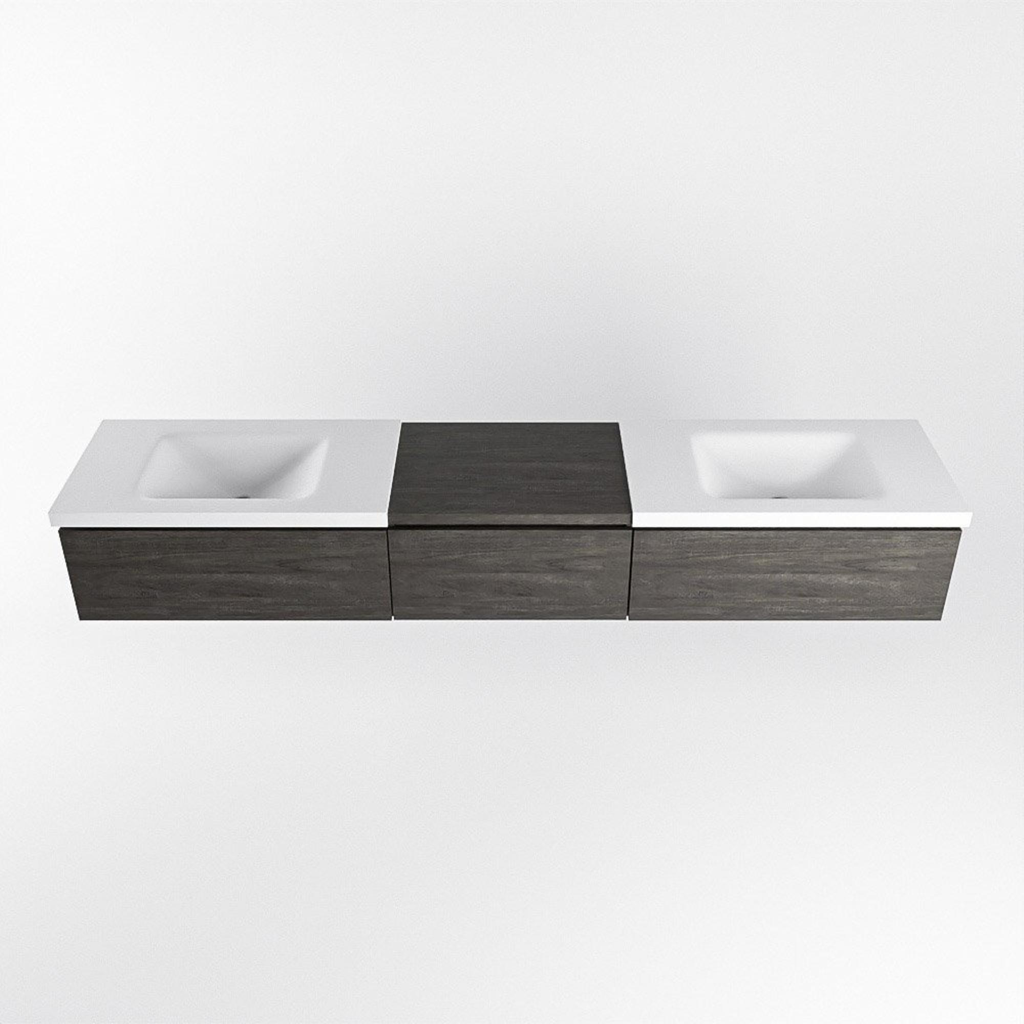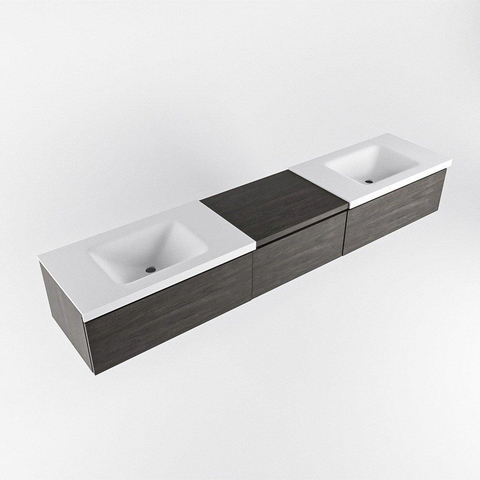 Le meuble de salle de bain MONDIAZ BUKLA dégage style et classe grâce à sa couleur Marron Foncé et ses lignes épurées. Les 3 tiroirs offrent suffisamment d'espace pour organiser tous vos articles de salle de bain, tandis que le double lavabo CLOUD avec 2 trous de robinet ajoute une touche élégante à l'ensemble.