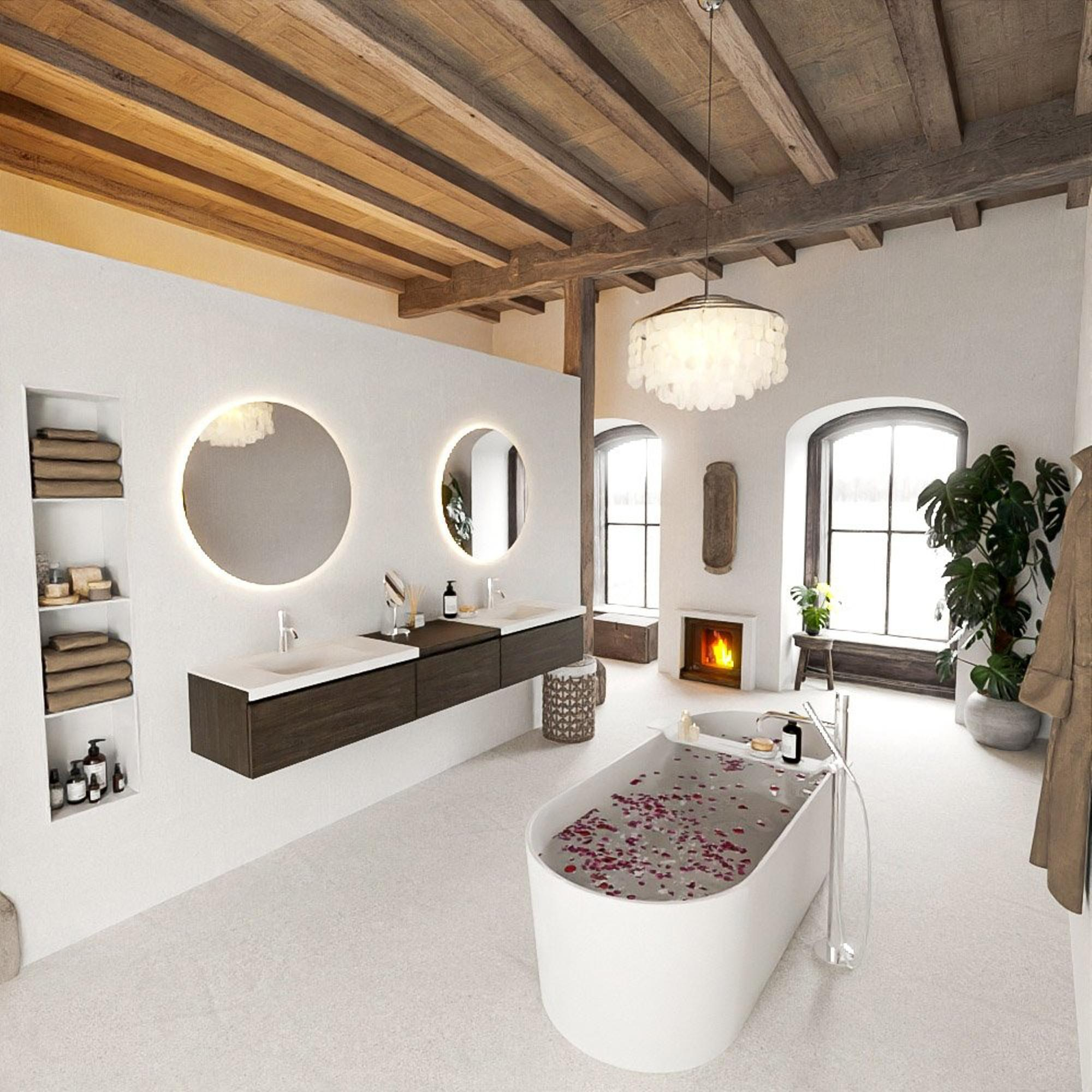 En plus de l'aspect esthétique, ce meuble de salle de bain est également très fonctionnel. Les 3 tiroirs garantissent une salle de bain bien rangée, tandis que le double lavabo permet à deux personnes de l'utiliser simultanément. La couleur Talc du lavabo donne une apparence fraîche et moderne.