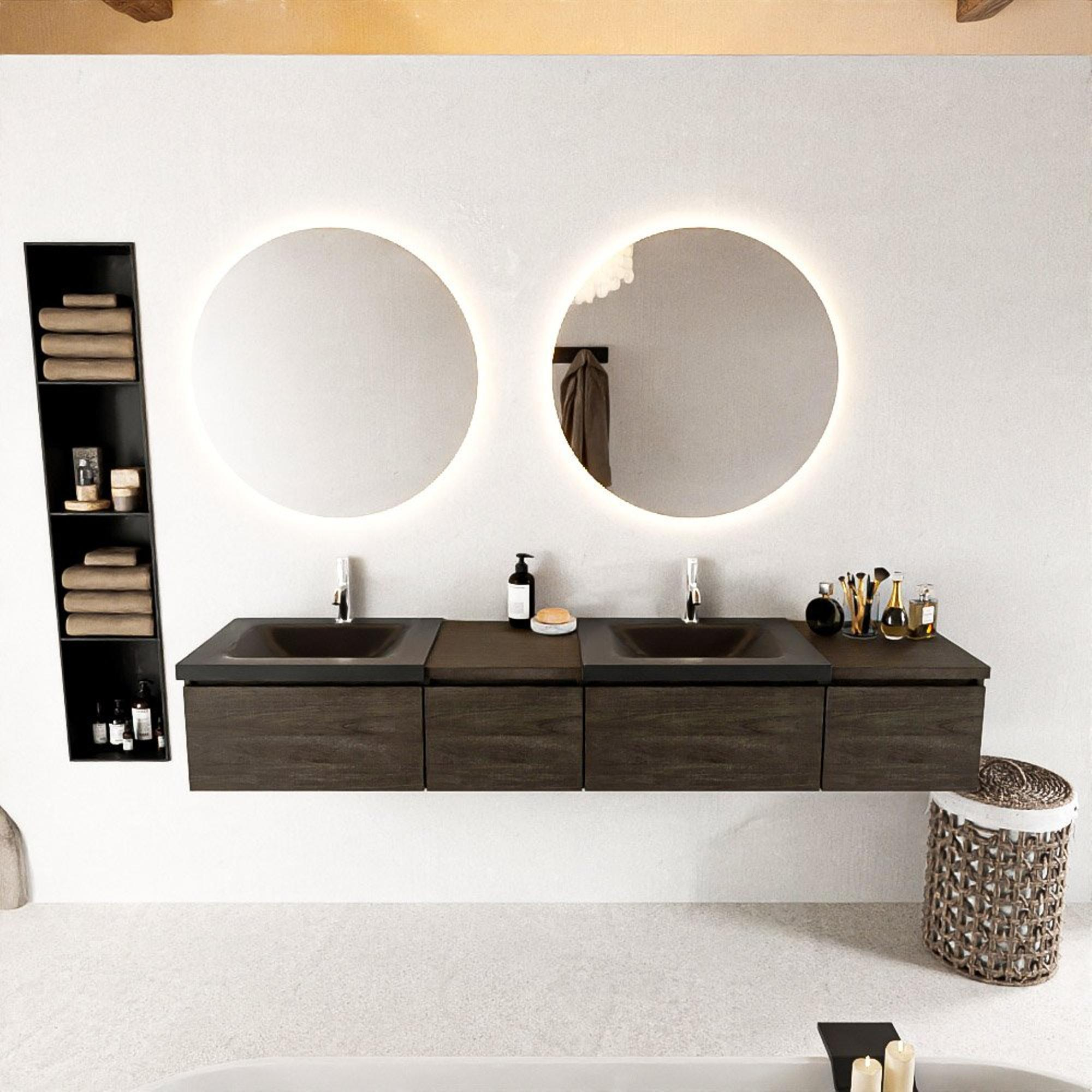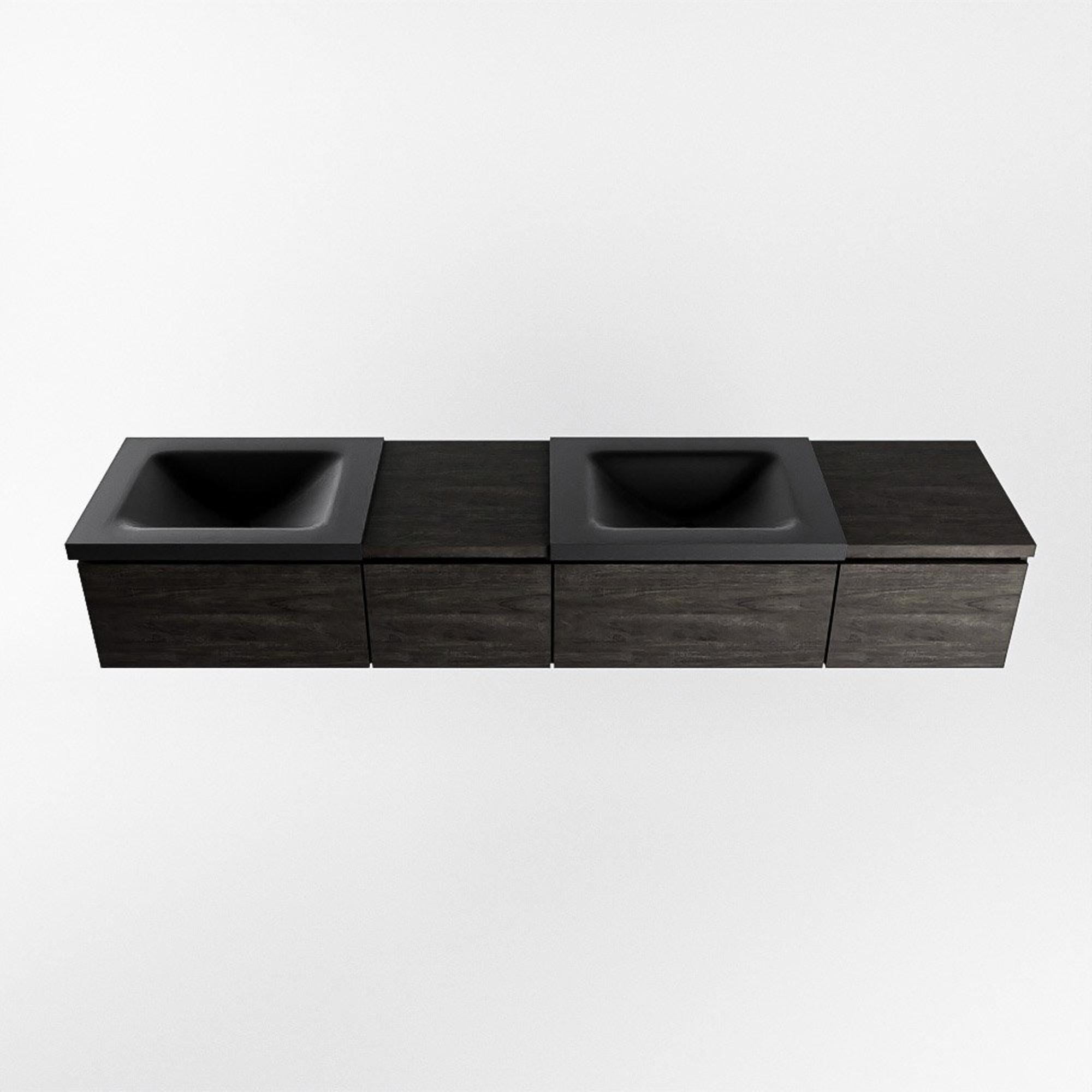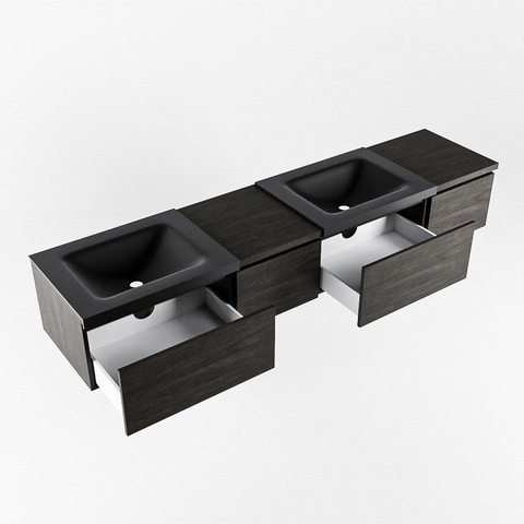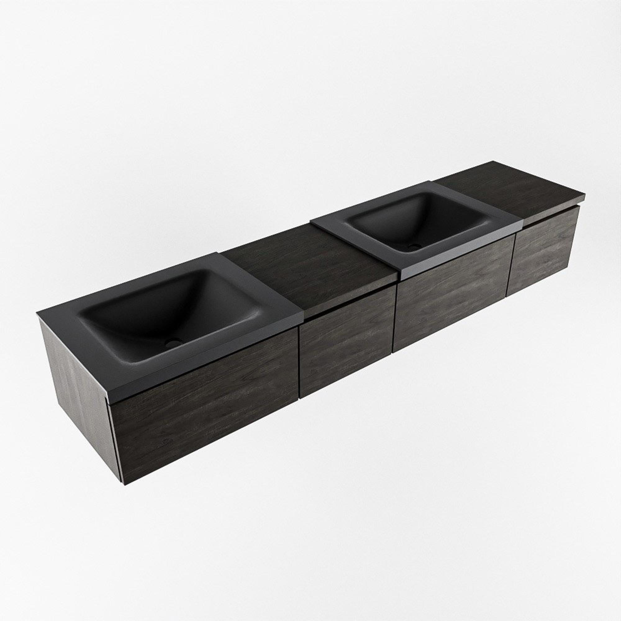 MONDIAZ BUKLA 200cm ensemble de meuble avec module 40 gauche couleur Marron Foncé avec 4 tiroirs. Lavabo CLOUD double 2 trous de robinet couleur Urban.