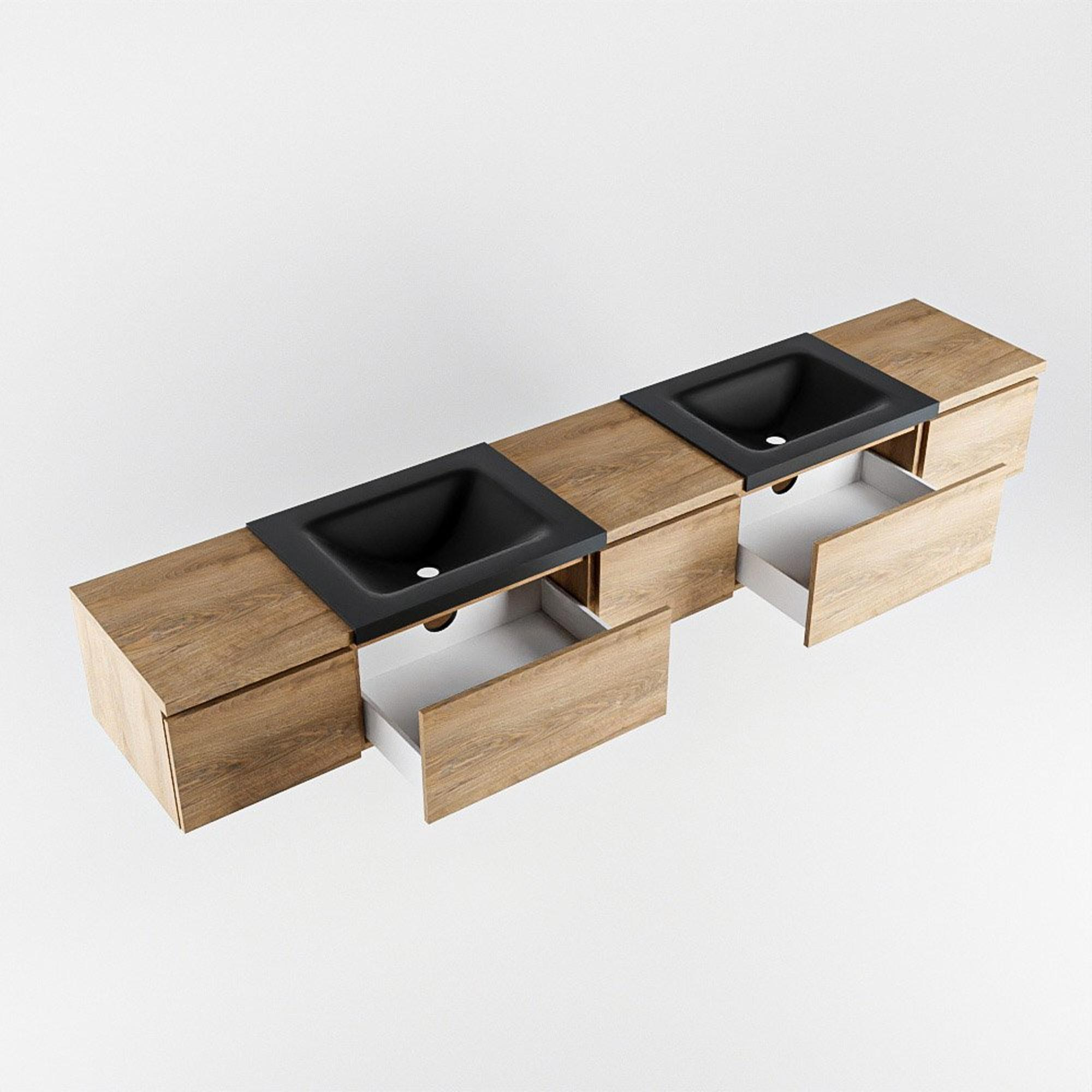 MONDIAZ BUKLA 240cm ensemble de meuble avec module 40 couleur Chêne blanchi avec 5 tiroirs. Lavabo CLOUD double 0 trou de robinet couleur Urbaine.