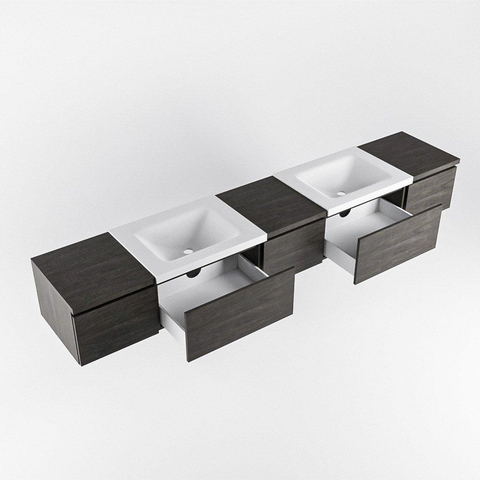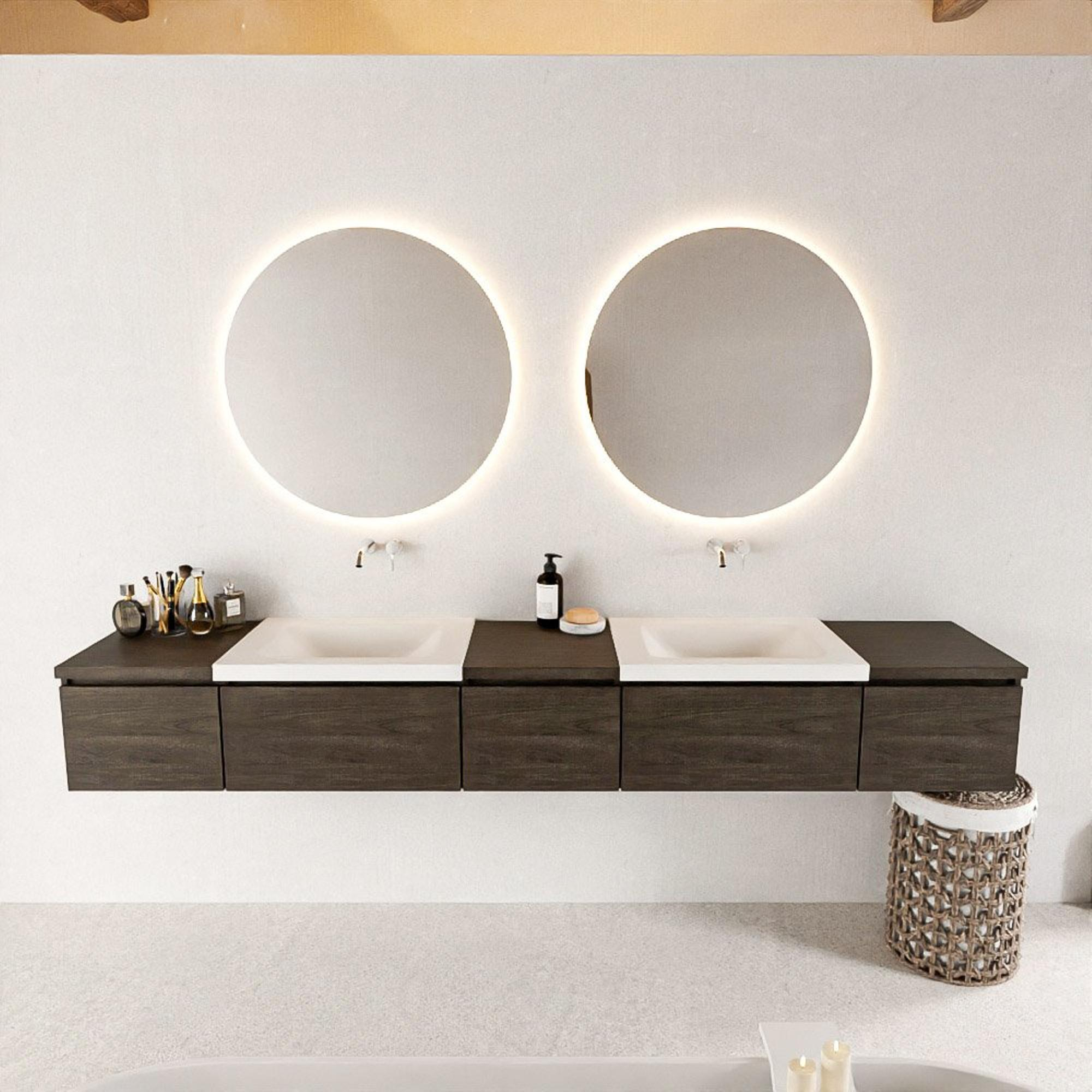 Avec sa couleur marron foncé et ses lignes épurées, ce meuble de salle de bain dégage une élégance intemporelle. Les 5 tiroirs offrent suffisamment d'espace de rangement pour tous vos accessoires de salle de bain, tandis que le double lavabo assure un confort ultime lors des matins chargés.