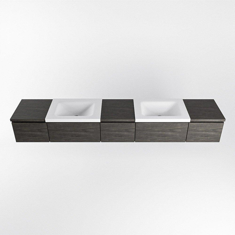 MONDIAZ BUKLA 240cm ensemble de meuble avec module 40 couleur Marron Foncé avec 5 tiroirs. Lavabo CLOUD double 0 trou de robinet couleur Talc.
