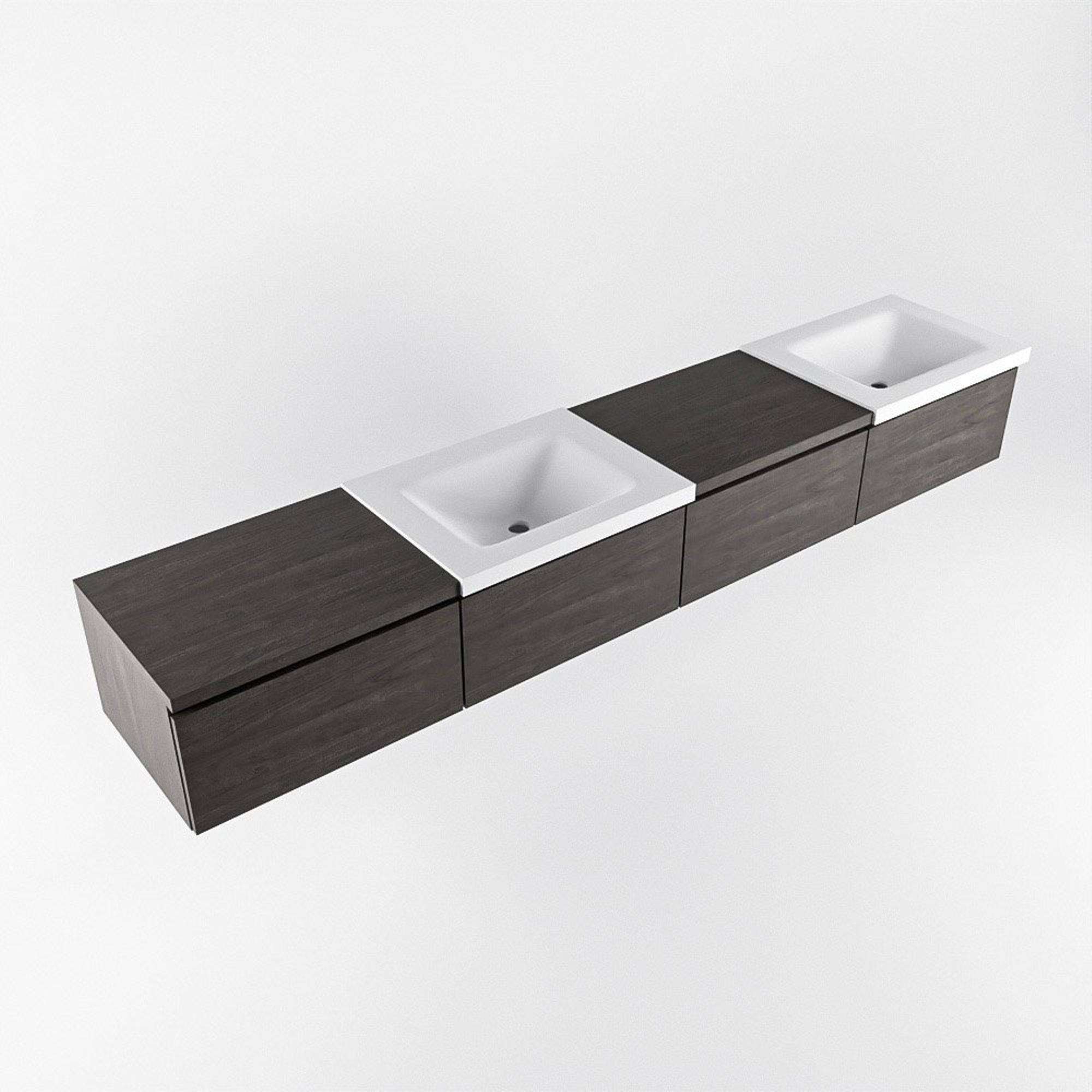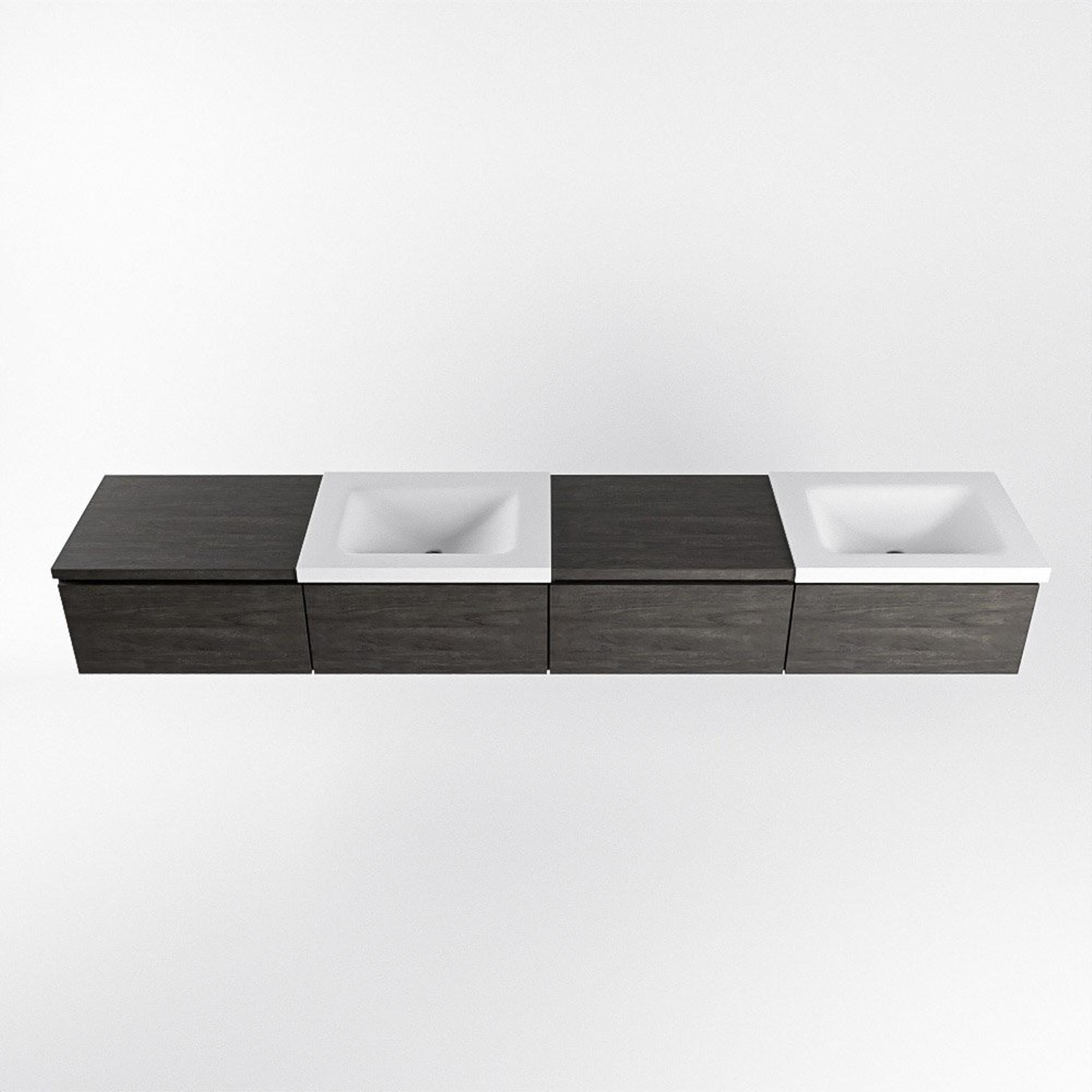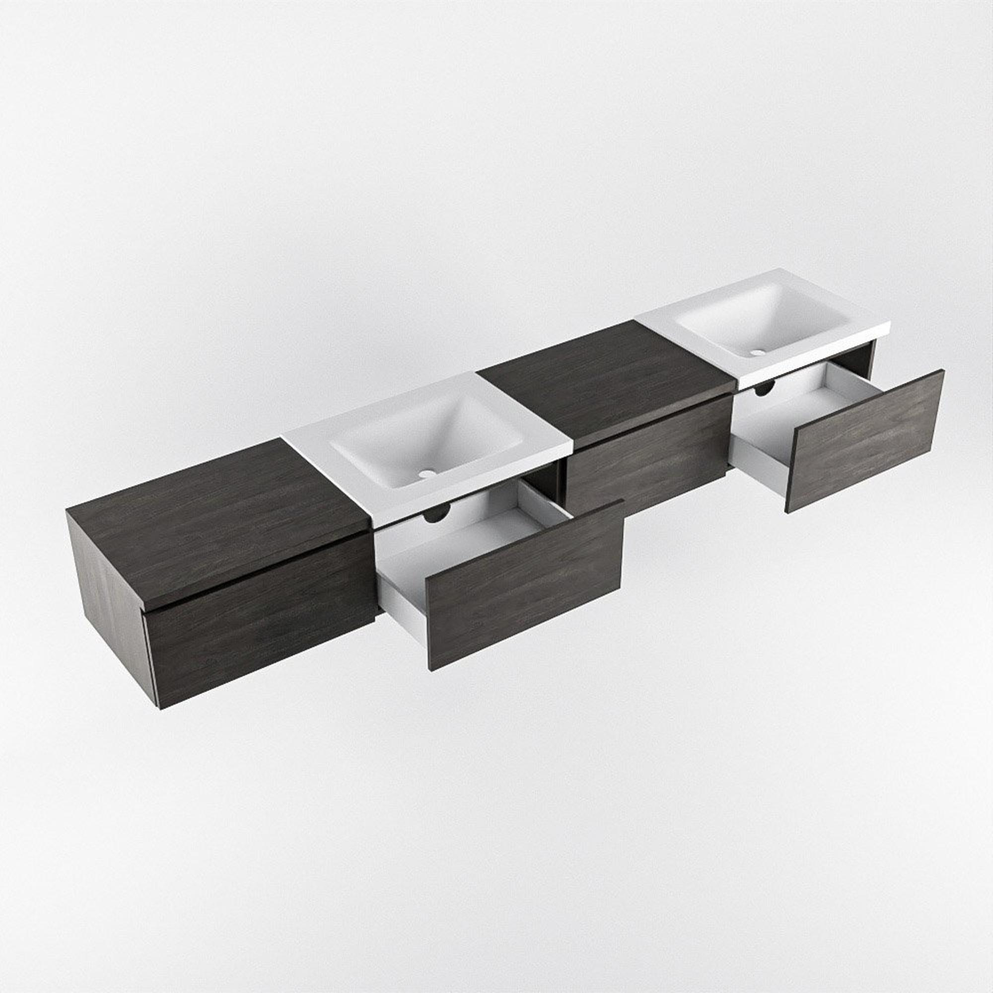 Ce meuble de salle de bain n'est pas seulement une déclaration visuelle, mais aussi extrêmement pratique à utiliser. Les 4 tiroirs offrent suffisamment d'espace pour garder votre salle de bain organisée, tandis que le double lavabo assure un confort supplémentaire lors de votre routine quotidienne. Profitez du meilleur des deux mondes avec ce meuble polyvalent et fonctionnel.