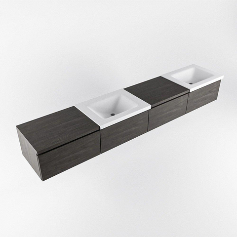 MONDIAZ BUKLA 240cm ensemble de meuble avec module 60 gauche couleur Marron Foncé avec 4 tiroirs. Lavabo CLOUD double 0 trou de robinet couleur Talc.