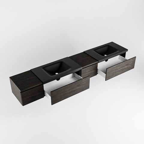 MONDIAZ BUKLA 240cm ensemble de meuble avec module 40 à droite couleur Marron Foncé avec 4 tiroirs. Lavabo CLOUD double 0 trou de robinet couleur Urban.