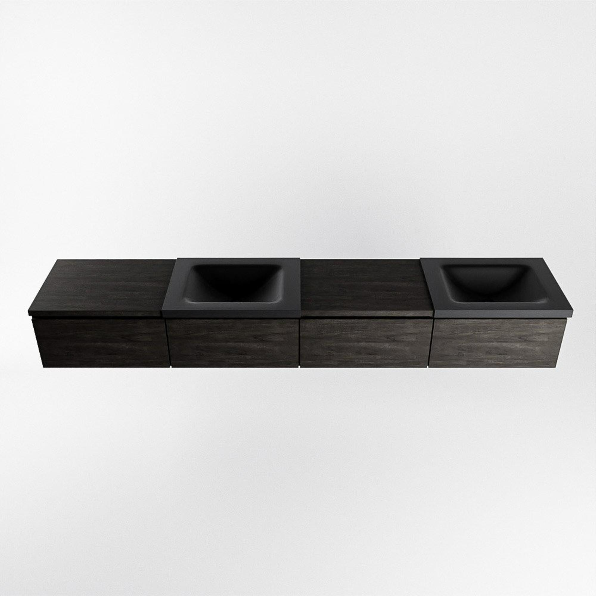 MONDIAZ BUKLA 240cm ensemble de meuble avec module 60 gauche couleur Marron Foncé avec 4 tiroirs. Lavabo CLOUD double 2 trous de robinet couleur Urban.