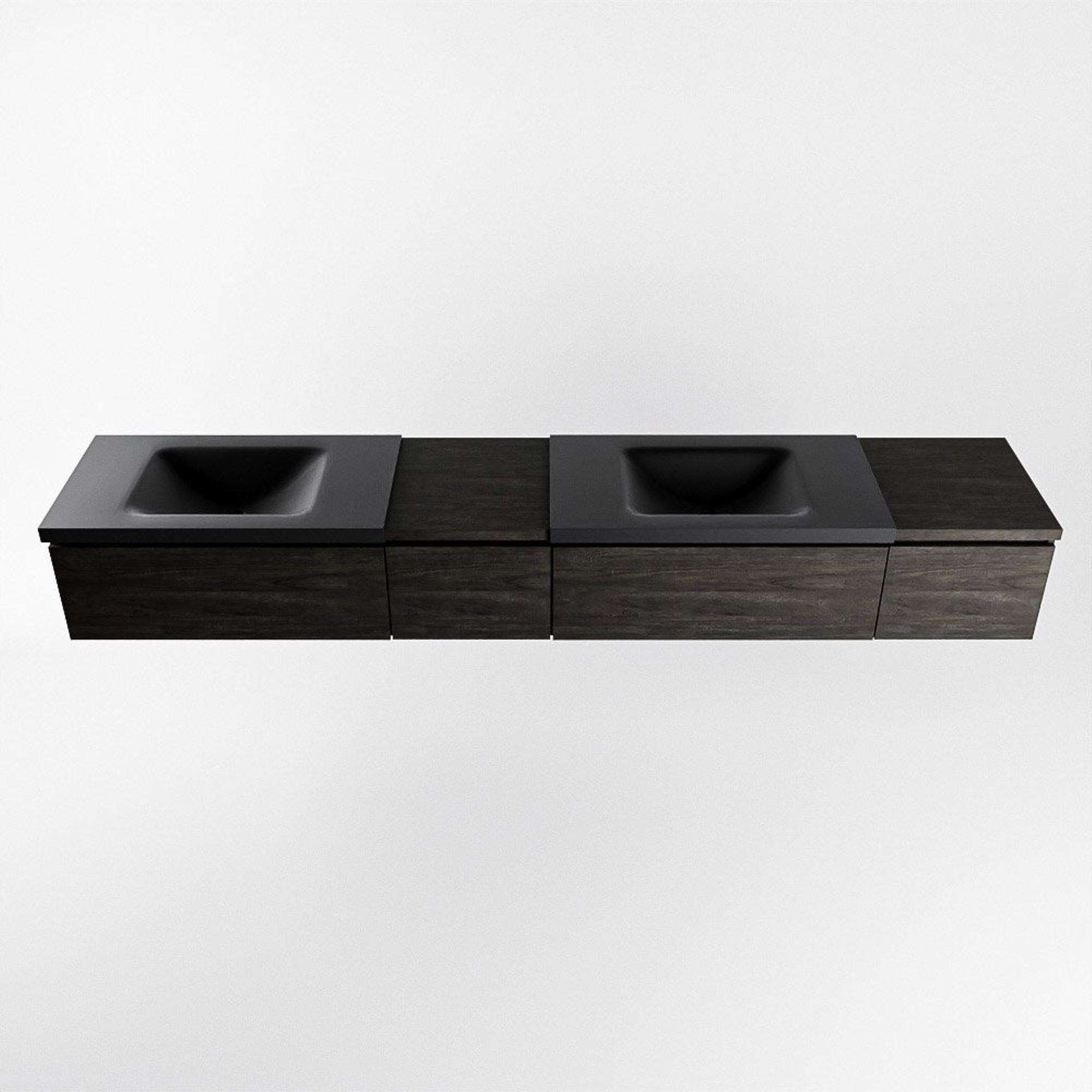 MONDIAZ BUKLA 240cm ensemble de meuble avec module 40 gauche couleur Marron Foncé avec 4 tiroirs. Lavabo CLOUD double 2 trous de robinet couleur Urban.