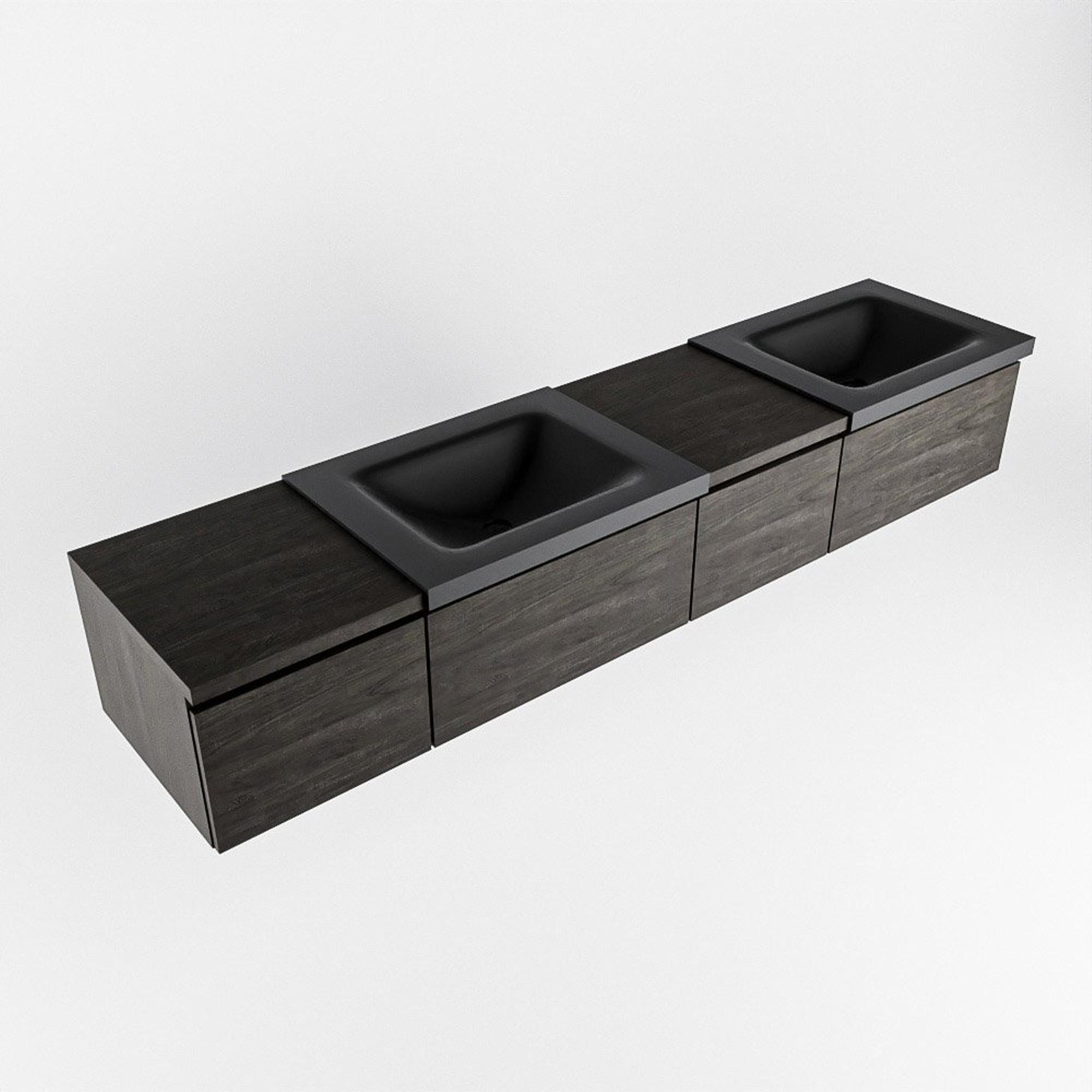 MONDIAZ BUKLA Meuble de salle de bains 200cm avec module 40 à droite couleur Dark Brown avec 4 tiroirs. Lavabo CLOUD double 2 trous de robinet couleur Urban.