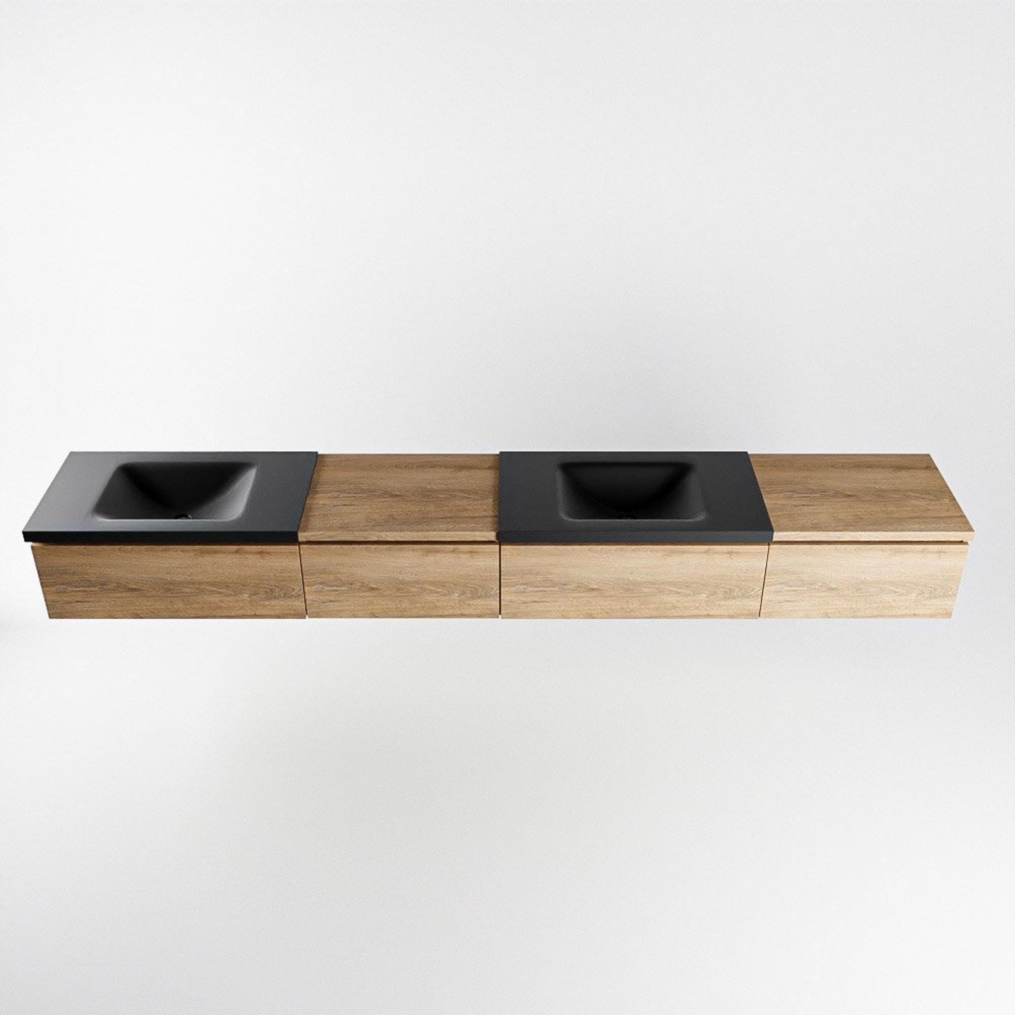 MONDIAZ BUKLA meuble de salle de bains 280cm avec module 60 gauche couleur Washed Oak avec 4 tiroirs. Lavabo CLOUD double 0 trous de robinet couleur Urban.