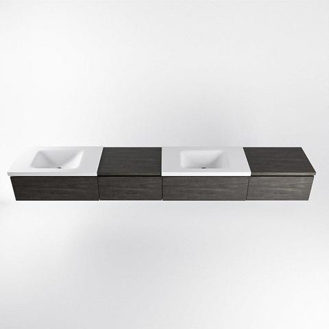 MONDIAZ BUKLA 280cm ensemble de meuble avec module 60 gauche couleur Marron Foncé avec 4 tiroirs. Lavabo CLOUD double 2 trous de robinet couleur Talc.