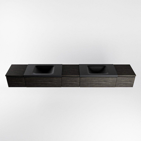 MONDIAZ BUKLA 280cm ensemble de meuble avec module 40 couleur Marron Foncé avec 5 tiroirs. Lavabo CLOUD double 0 trou de robinet couleur Urban.