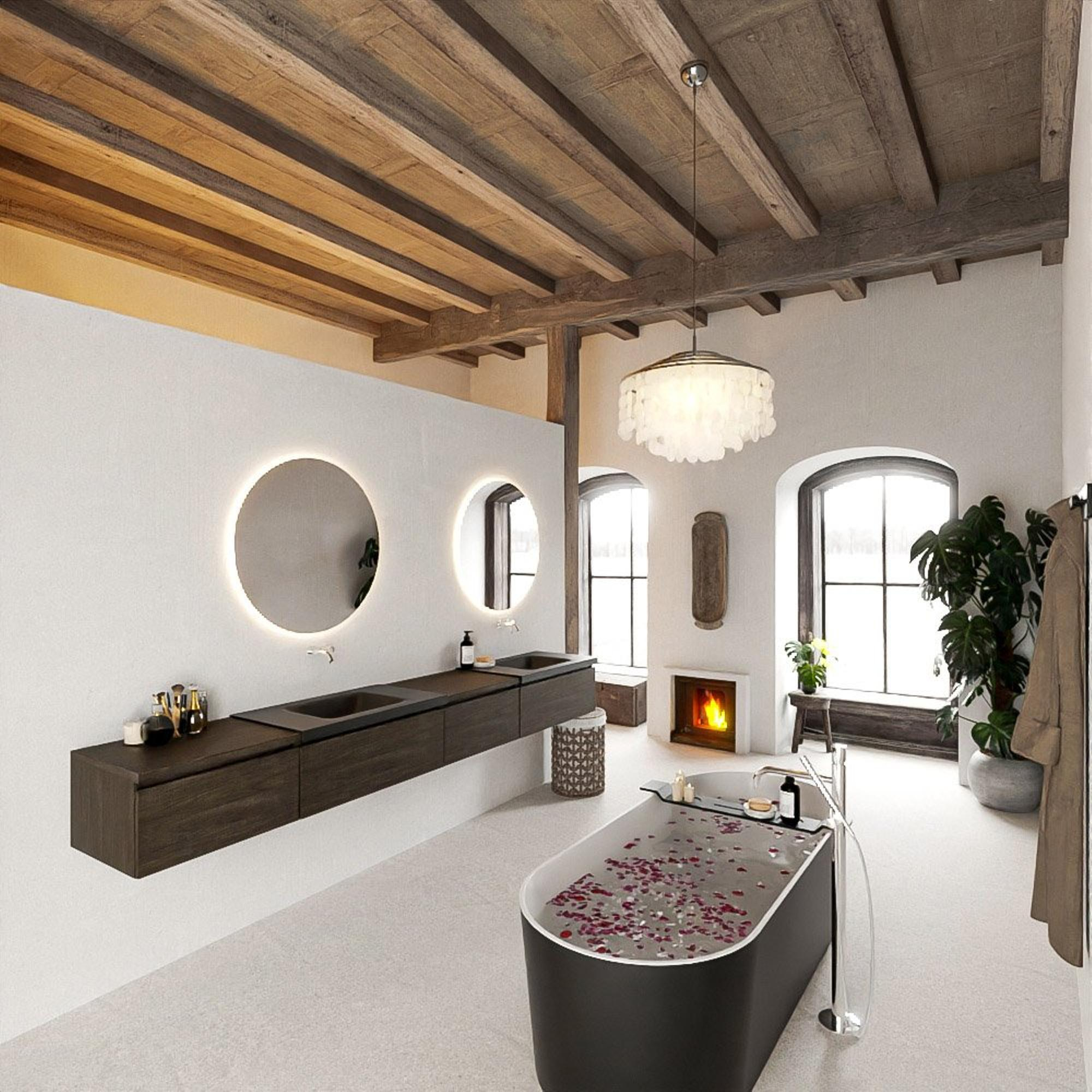 En plus de son attrait esthétique, ce meuble de salle de bain est également extrêmement fonctionnel. La largeur de 280 cm permet de garder tous vos articles de toilette organisés. Le module droit offre un espace de rangement supplémentaire et facilite l'adaptation de l'agencement de votre salle de bain. Le lavabo CLOUD double avec 0 trou de robinet offre suffisamment d'espace pour les soins quotidiens.