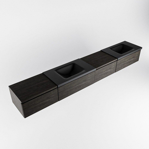 MONDIAZ BUKLA 280cm ensemble de meuble avec module 60 à droite couleur Marron Foncé avec 4 tiroirs. Lavabo CLOUD double 0 trou de robinet couleur Urban.