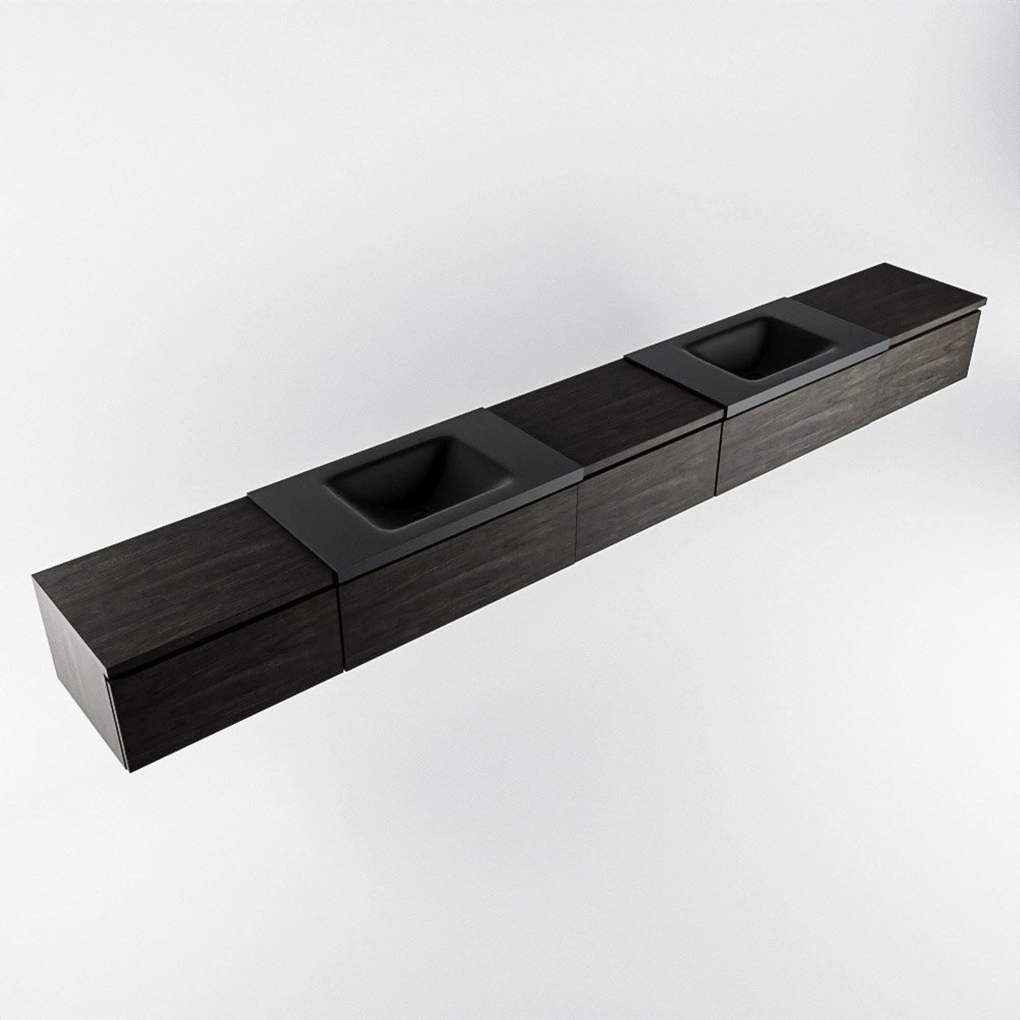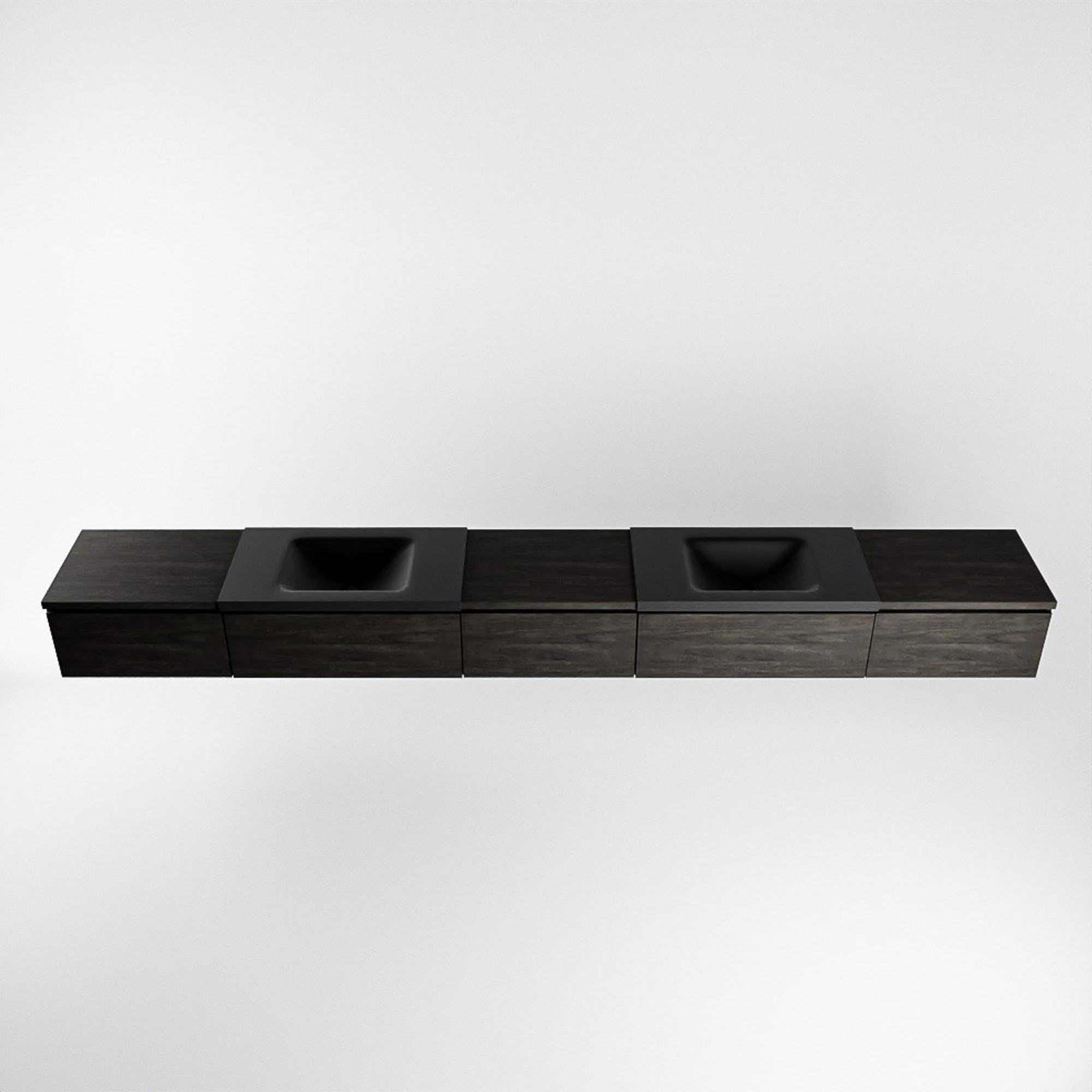 Avec 5 tiroirs et un double lavabo, ce meuble de salle de bain est extrêmement pratique à utiliser. La couleur Marron Foncé se marie facilement avec différents styles de salle de bain, tandis que la longueur de 340cm offre suffisamment d'espace pour tous vos besoins. Le lavabo Cloud avec 2 trous de robinet rend le partage de la salle de bain un jeu d'enfant, tout en ayant un aspect élégant.