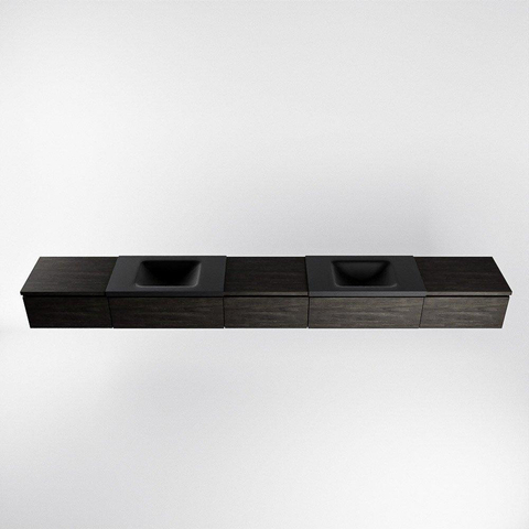 MONDIAZ BUKLA 340cm ensemble de meuble avec module 60 couleur Marron Foncé avec 5 tiroirs. Lavabo CLOUD double 2 trous de robinet couleur Urban.